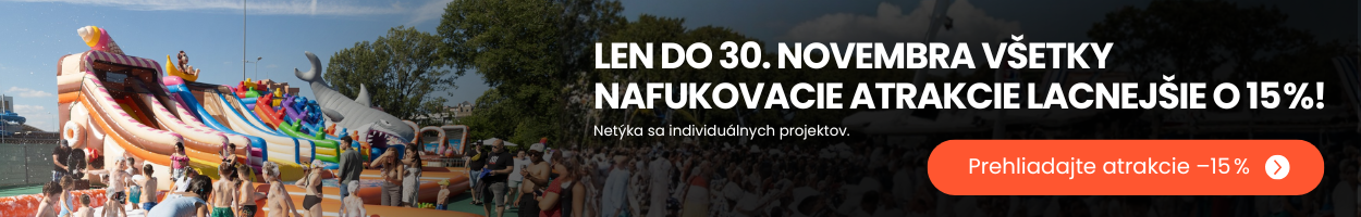 Je čas na vodnú zábavu! S nafukovacími vodnými atrakciami sa každé podujatie stane nezabudnuteľnou zábavou pre všetkých – deti, dospelých, rodiny, priateľov aj kolegov. Hovoríme nielen o mimoriadne obľúbených nafukovacích vodných šmykľavkách, ale aj o ďalších originálnych atrakciách, ktoré spríjemnia spoločné chvíle. Nafukovacie vodné atrakcie sú skvelým doplnkom každej vonkajšej akcie a väčšina z nich sa dá používať ako vo vode, tak aj na sucho.