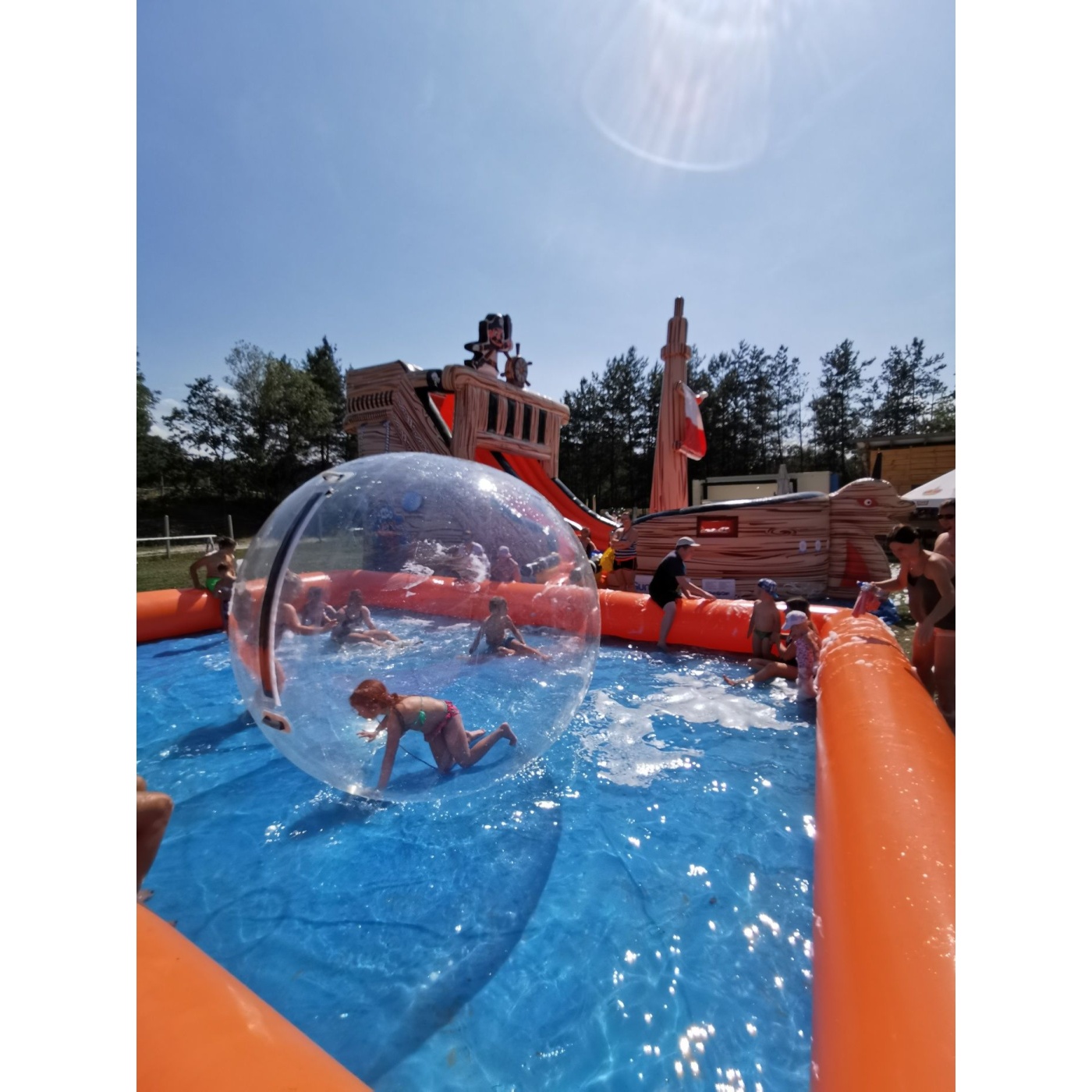 Nafukovací bazén pre vodné lopty, 5 x 7 m je atrakcia určená pre všetkých milovníkov vodného dobrodružstva bez ohľadu na vek. Nafukovacie vodné bazény sú neoddeliteľnou súčasťou ďalších zábavných prvkov vodného parku, ako sú vodné valce alebo vodné gule. Vodná atrakcia vo forme bazéna umožňuje účastníkom príjemné osvieženie počas firemných akcií, festivalov či vonkajších osláv. Nafukovacie vodné atrakcie sú vytvorené tak, aby obohatili zážitky detí a tínedžerov počas spoločných stretnutí. Nafukovací vodný bazén môže byť skutočným hitom pre každého, kto rád trávi čas vonku počas dlhých letných popoludní a teplých večerov.