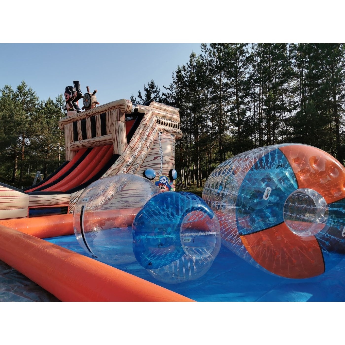 Ponorte sa a vyrazte na dobrodružstvo za pokladmi. Nafukovacie vodné bazény sú dostupné v rôznych veľkostiach, môžete ich prispôsobiť plánovanej udalosti. Perfektne poslúžia ako relaxačné miesto pre rodičov a účastníkov počas vonkajšej oslavy, rozlúčky so slobodou či pikniku na mestskom kúpalisku. Vodné bazény sú dostupné v rôznych farbách, takže ich viete zladiť s témou podujatia. Ponúknite účastníkom možnosť zábavy na vodných valcoch alebo v nafukovacích guliach práve vo vašom bazéne.