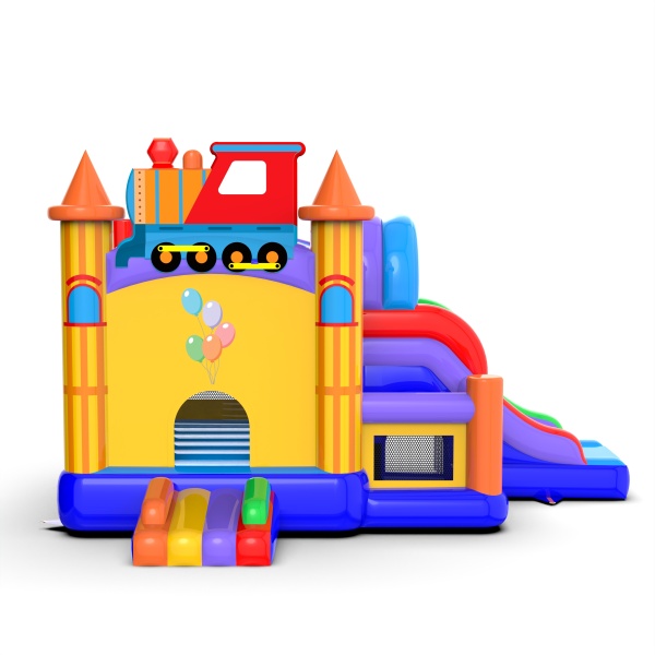 Parný výbuch, prosím, nastupte, odchádzame! Dobrodružstvo v rade pre najmenších. Tento skákací vlak je plný dobrodružstva. Objavte ešte viac. Popustite uzdu svojej fantázii a odskočte si do ďalekých končín neznáma. Nafukovačka v motíve vláčika vám splní sny o cestovaní.