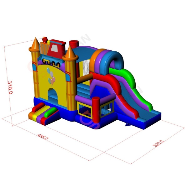 Rovnako ako všetky naše nafukovacie atrakcie, aj tento produkt je vyrobený z vysokokvalitných materiálov — v tomto prípade z PVC novej generácie s vysokou odolnosťou proti pretrhnutiu. Kombinácia skákacieho hradu a lunaparku má rozmery 4,85 m x 3,2 m x 3 m (dĺžka, šírka a výška). Spĺňa bezpečnostnú normu PN-EN 14960 pre nafukovacie herné vybavenie. Odporúčame používať túto atrakciu spolu s ventilátormi, ktoré sú súčasťou balenia. Rovnako ako väčšina našich atrakcií, aj tento produkt má dvojročnú záruku. V spoločnosti Gangaru vám všetko uľahčujeme — každá atrakcia obsahuje kompletnú súpravu príslušenstva na ukotvenie (laná, kolíky). Atrakcia bola takisto odborne skontrolovaná nezávislým expertom.