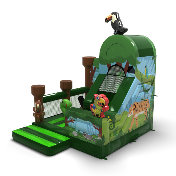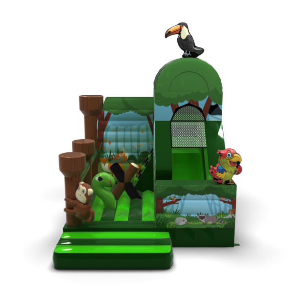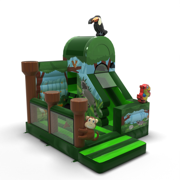 Nafukovacia šmykľavka - džungľa s potlačou je určený pre všetkých milovníkov radostného skákania. Deti sa na ňom rady hrajú – skáču a vžívajú sa do rolí inšpirovaných témou atrakcie. Nafukovacia šmykľavka - džungľa s potlačou nie je určený len pre najmenšie deti. Nafukovacie atrakcie z tejto kategórie sú často bohato zdobené a plné prvkov, ktoré podporujú aktívnu zábavu vonku. Nafukovacie hrady dokážu vytvoriť fantastický svet dobrodružstva, ideálny na hodiny radostnej hry s kamarátmi a rovesníkmi. Môžu byť tiež kombinované s ďalšími produktmi z našej ponuky a vytvoriť krásny rozprávkový zážitok plný vzrušenia a pohybu.