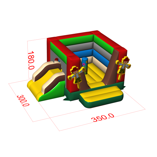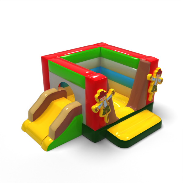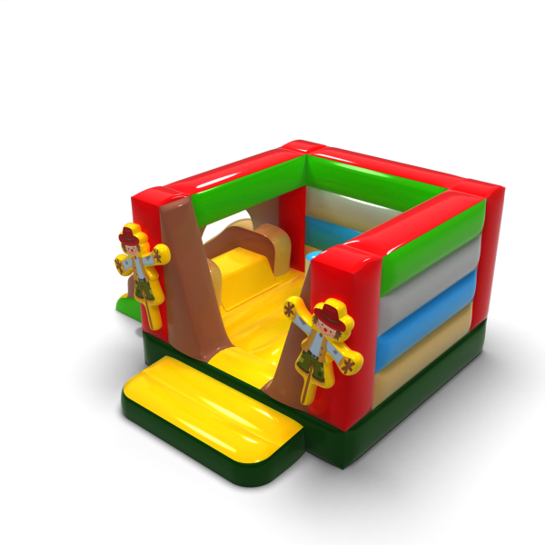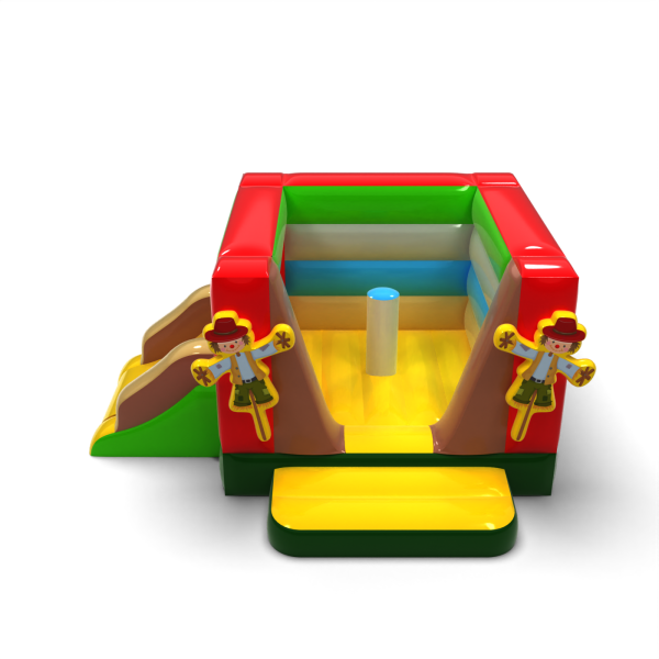 Malý skákací hrad so šmykľavkou - s farmárskym motívom je určený pre všetkých milovníkov radostného skákania. Deti sa na ňom rady hrajú – skáču a vžívajú sa do rolí inšpirovaných témou atrakcie. Malý skákací hrad so šmykľavkou - s farmárskym motívom nie je určený len pre najmenšie deti. Nafukovacie atrakcie z tejto kategórie sú často bohato zdobené a plné prvkov, ktoré podporujú aktívnu zábavu vonku. Nafukovacie hrady dokážu vytvoriť fantastický svet dobrodružstva, ideálny na hodiny radostnej hry s kamarátmi a rovesníkmi. Môžu byť tiež kombinované s ďalšími produktmi z našej ponuky a vytvoriť krásny rozprávkový zážitok plný vzrušenia a pohybu.