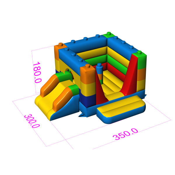 Malý skákací hrad so šmykľavkou - s motívom farebných kociek je určený pre všetkých milovníkov radostného skákania. Deti sa na ňom rady hrajú – skáču a vžívajú sa do rolí inšpirovaných témou atrakcie. Malý skákací hrad so šmykľavkou - s motívom farebných kociek nie je určený len pre najmenšie deti. Nafukovacie atrakcie z tejto kategórie sú často bohato zdobené a plné prvkov, ktoré podporujú aktívnu zábavu vonku. Nafukovacie hrady dokážu vytvoriť fantastický svet dobrodružstva, ideálny na hodiny radostnej hry s kamarátmi a rovesníkmi. Môžu byť tiež kombinované s ďalšími produktmi z našej ponuky a vytvoriť krásny rozprávkový zážitok plný vzrušenia a pohybu.