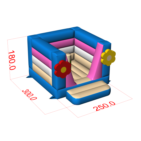 Farebný skákací hrad s havajským motívom je možnosťou pre organizátorov, ktorí chcú obohatiť detský areál o atraktívne a bezpečné miesto na hranie. Motív kvetov a veselé farby upútajú pozornosť a sú vhodné na vonkajšie podujatia, rodinné pikniky alebo hotelové animácie. Nízka výška konštrukcie (180 cm) umožňuje jej použitie aj v interiéri. Vďaka svojej uzavretej forme skákací hrad podporuje voľnú, ale kontrolovanú zábavu a jeho kompaktné rozmery uľahčujú logistiku. Zabezpečte si moderné zvýraznenie, ktoré môžete ľahko prispôsobiť rôznym scenárom podujatí.