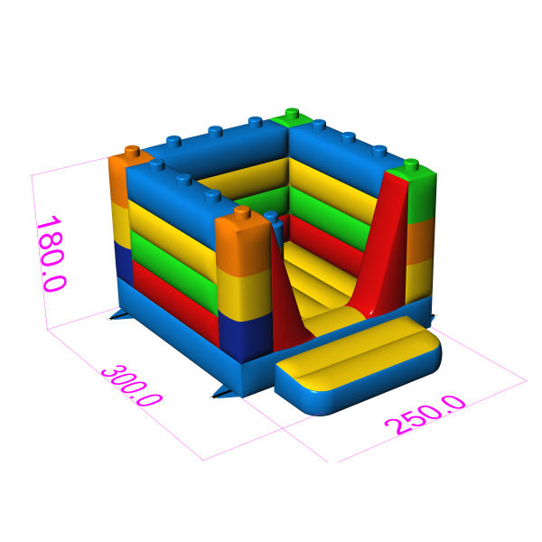 Vizuálne atraktívny skákací hrad, ktorý pripomína konštrukciu z veľkých farebných blokov. Jednoduchý tvar a nízka výška (180 cm) umožňujú bez problémov postaviť atrakciu aj v interiéri. Dobre sa uplatní na rodinných podujatiach, v reštauráciách s detským kútikom alebo v hotelových animačných priestoroch.