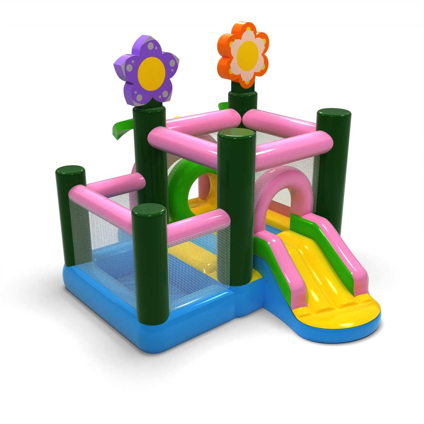 Na výrobu našich nafukovacích atrakcií používame kvalitné materiály TPU alebo PVC, ktoré sa vyznačujú mimoriadnou nátrhovou odolnosťou a relatívne nízkou hmotnosťou.