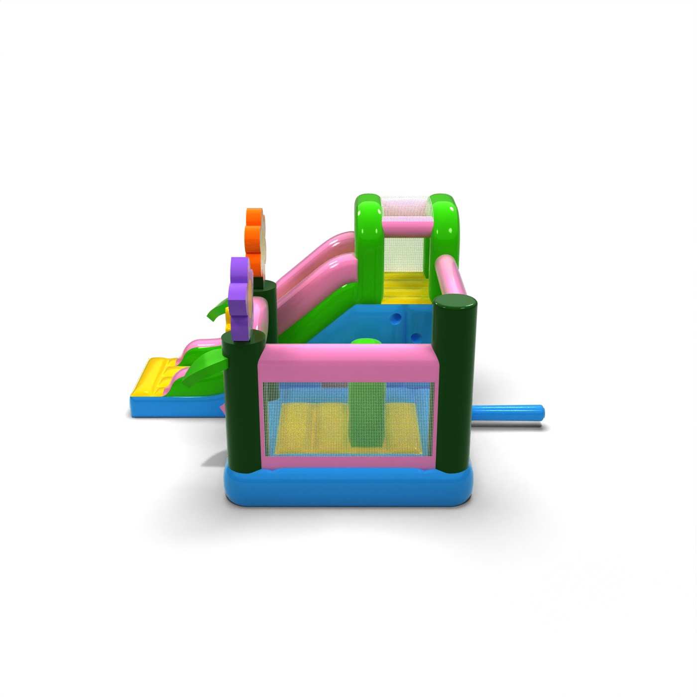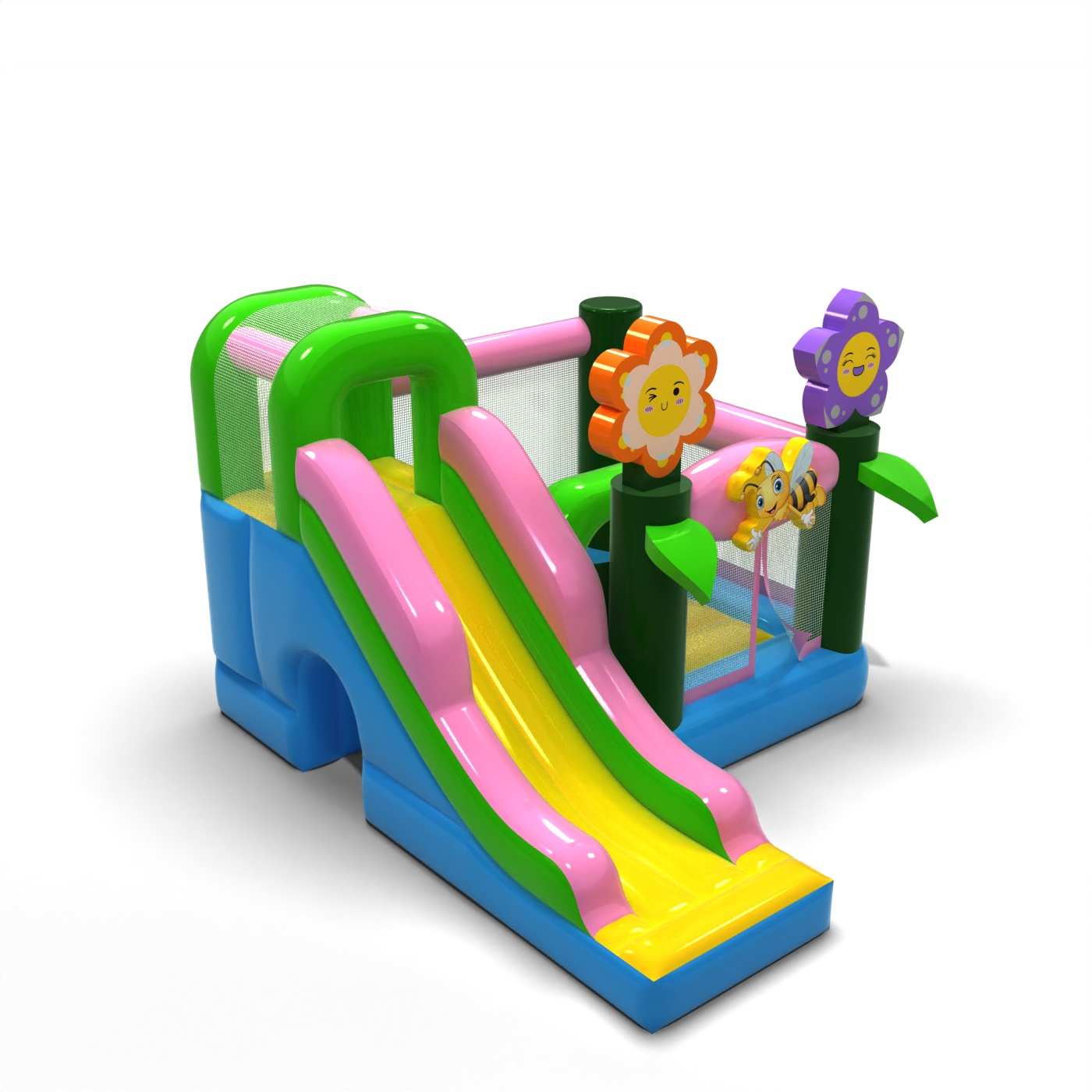 Jarná atmosféra a pastelový dizajn dodávajú tejto atrakcii ľahký a veselý charakter, ktorý je ideálny pre mladých účastníkov. Kombinácia skákania a šmykľavky spestruje zábavu a umožňuje deťom aktivitu bez toho, aby bola monotónna. Prírodné grafické motívy prinášajú sviežu atmosféru a dobre sa hodia na vonkajšie podujatia. Ide o praktickú možnosť pre požičovne, ktoré hľadajú všestranné nafukovacie atrakcie na jarnú/letnú sezónu. Model sa osvedčí na festivaloch, piknikoch a rodinných animáciách, kde je dôležitá ľahkosť formy a priateľská atmosféra zábavy.