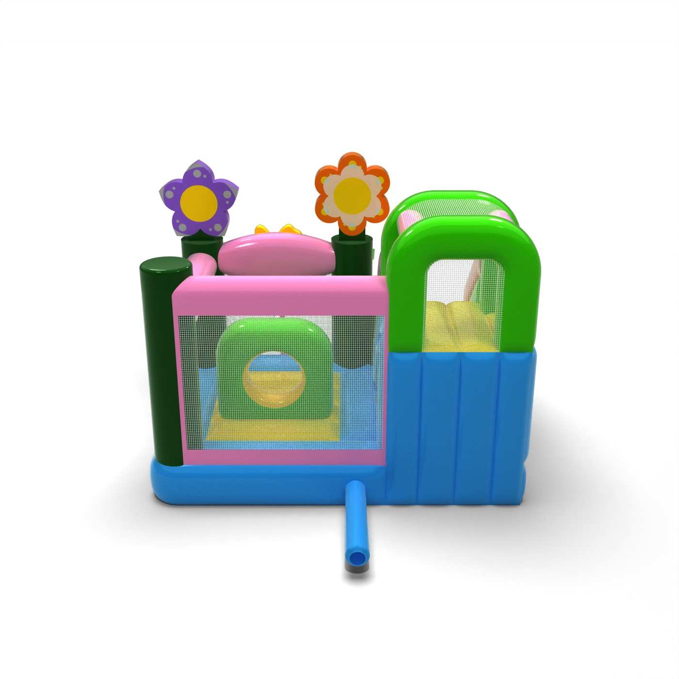 Jarný kombinovaný skákací hrad je určený pre všetkých milovníkov radostného skákania. Deti sa na ňom rady hrajú – skáču a vžívajú sa do rolí inšpirovaných témou atrakcie. Jarný kombinovaný skákací hrad nie je určený len pre najmenšie deti. Nafukovacie atrakcie z tejto kategórie sú často bohato zdobené a plné prvkov, ktoré podporujú aktívnu zábavu vonku. Nafukovacie hrady dokážu vytvoriť fantastický svet dobrodružstva, ideálny na hodiny radostnej hry s kamarátmi a rovesníkmi. Môžu byť tiež kombinované s ďalšími produktmi z našej ponuky a vytvoriť krásny rozprávkový zážitok plný vzrušenia a pohybu.
