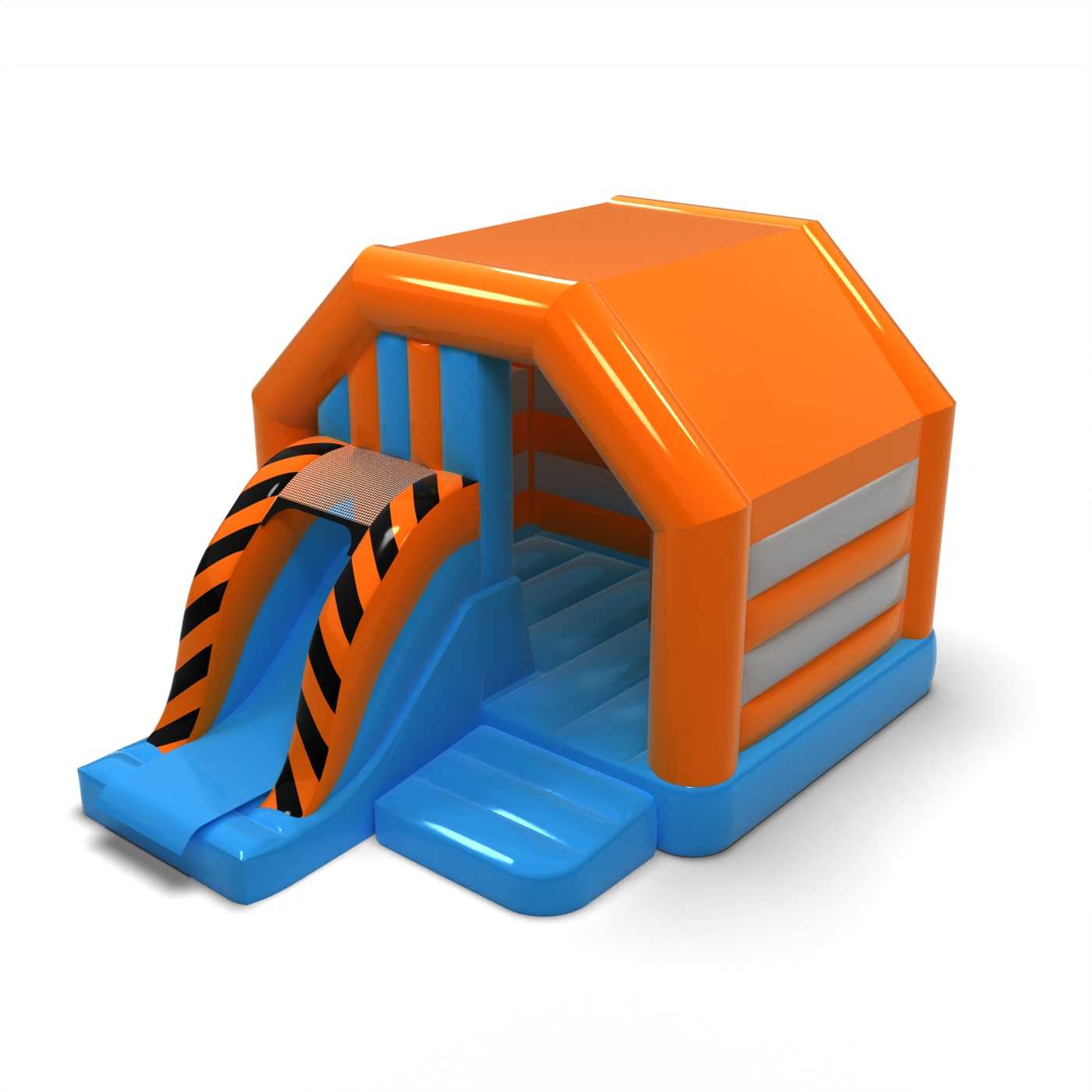 Klasická forma domčeka vytvára priateľský, ale neutrálny priestor na hranie pre deti. Kombinácia skákacích prvkov a šmykľavky poskytuje plynulú a dynamickú aktivitu počas celého podujatia. Tlmená estetika umožňuje, aby atrakcia ľahko zapadla do rôznych prostredí podujatí. Je to model, ktorý si vyberiete tam, kde je dôležitá všestrannosť a pokojný vizuálny charakter. Atrakcia je vhodná na festivaly, rodinné pikniky a firemné podujatia s deťmi.