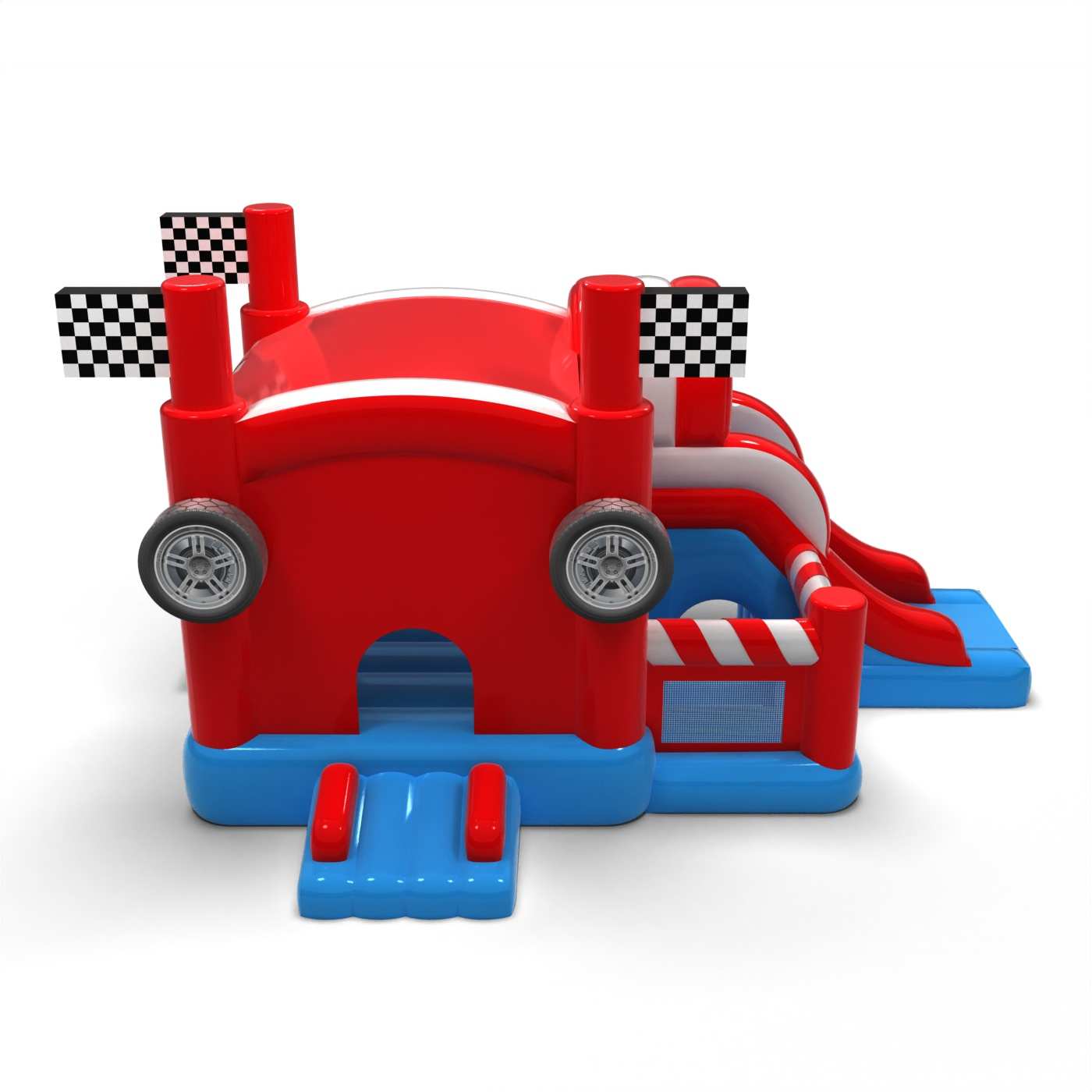 Vďaka väčšej karosérii a výraznému dizajnu atrakcia dobre vynikne v priestore podujatia. Integrovaná skákacia a šmýkacia zóna umožňuje deťom aktívne využívať nafukovačku bez toho, aby sa rýchlo začali nudiť. Motív auta buduje športovú energiu a dokonale sa hodí k dynamickému charakteru vonkajších podujatí. Je to solídna voľba pre organizátorov, ktorí hľadajú atrakciu s univerzálnym, ale výrazným vizuálnym motívom. Model sa bude dobre hodiť na väčšie festivaly, rodinné pikniky a mestské podujatia.