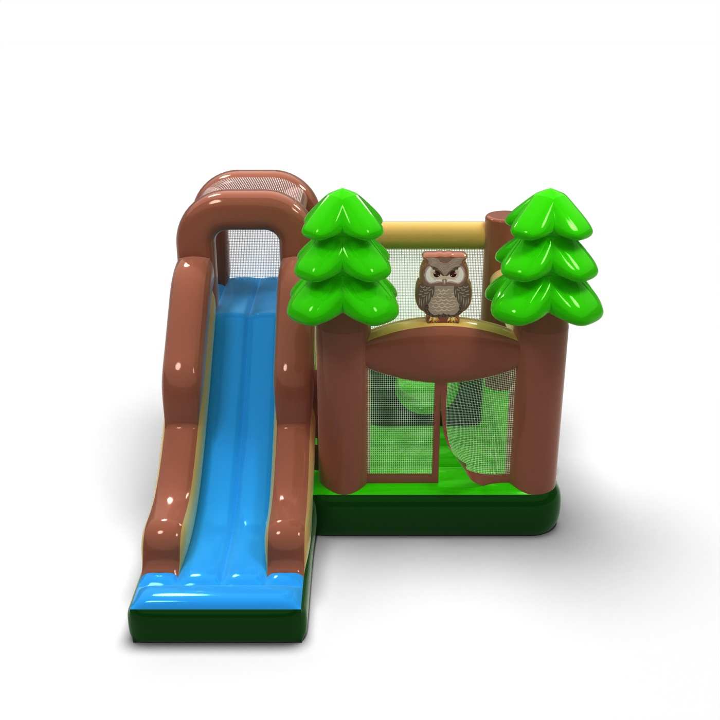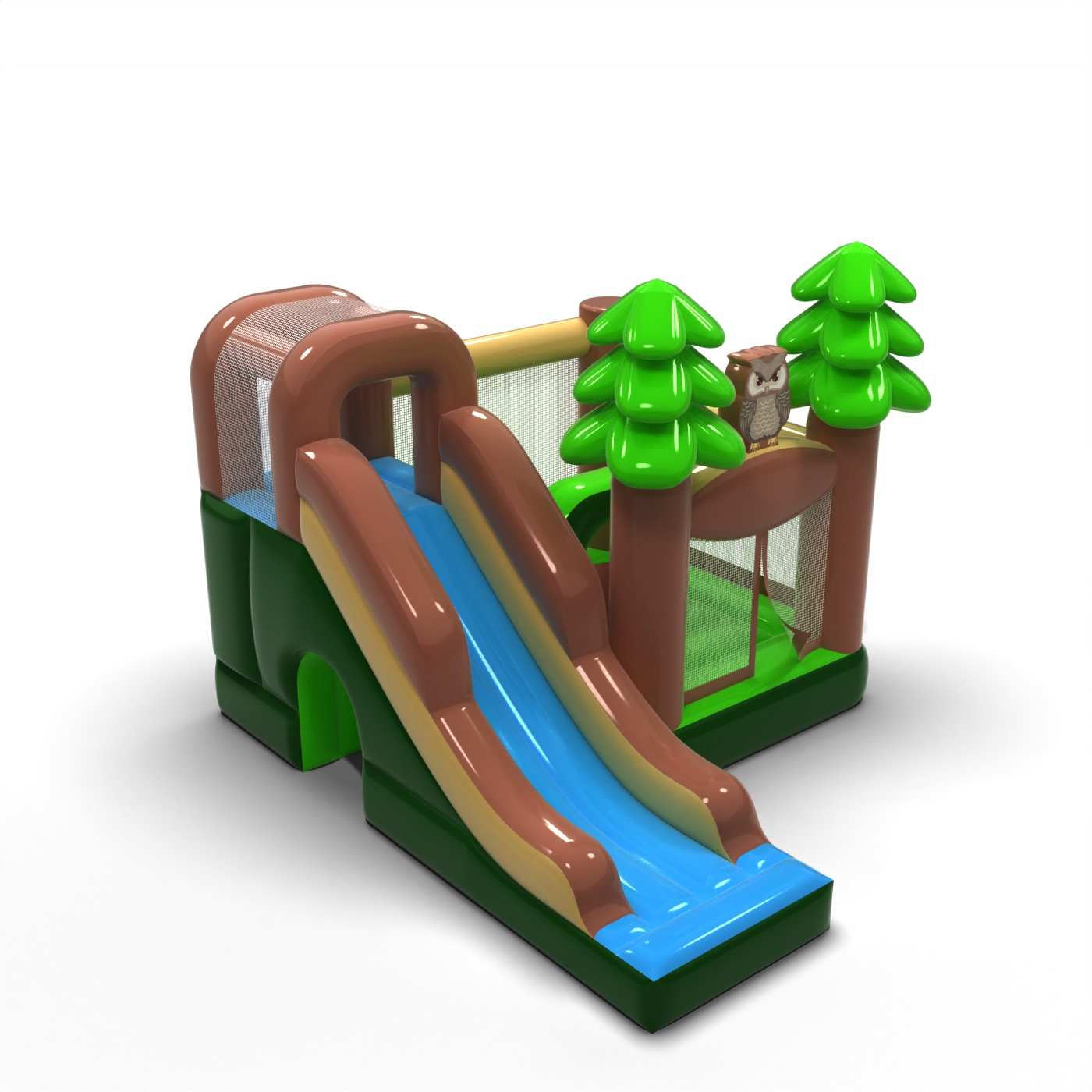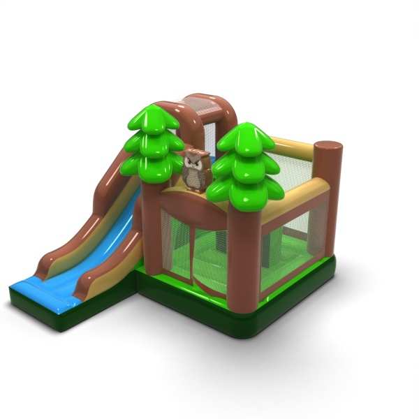 Prírodná lesná atmosféra dodáva tejto atrakcii hrejivý a harmonický charakter, ktorý sa dobre hodí na rodinné podujatia. Kombinácia skákacieho hradu a šmýkačky poskytuje deťom pestrú zábavu a účastníkom plynulý pohyb. Motívy inšpirované lesom vytvárajú priateľský vizuálny príbeh a podporujú aktivitu v pokojnom tempe. Je to praktická voľba na prenájmy slúžiace na pikniky a festivaly s prírodnou, vonkajšou atmosférou. Nafukovačka sa osvedčí na podujatiach, kde je dôležitá jemná estetika a bezpečná hra detí.