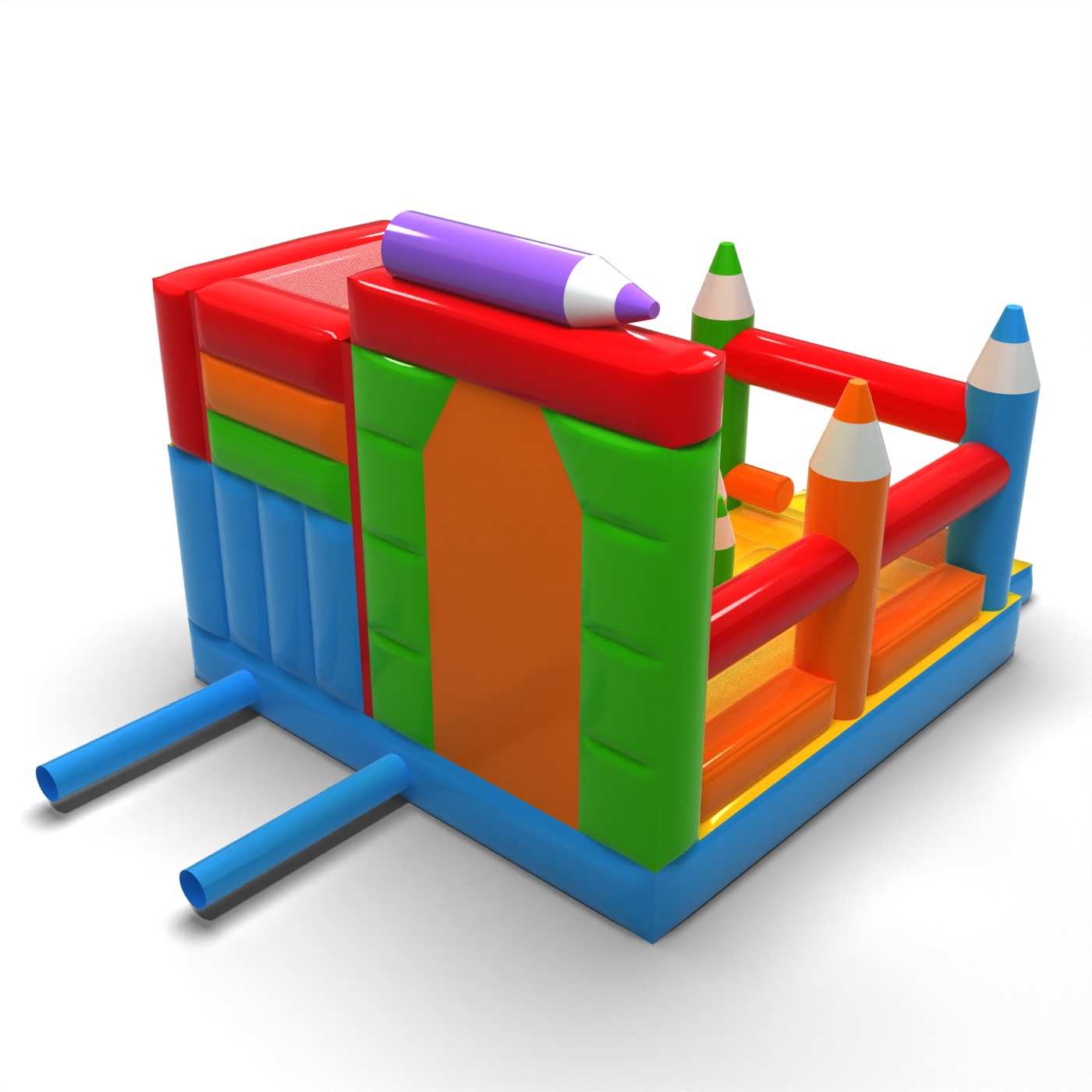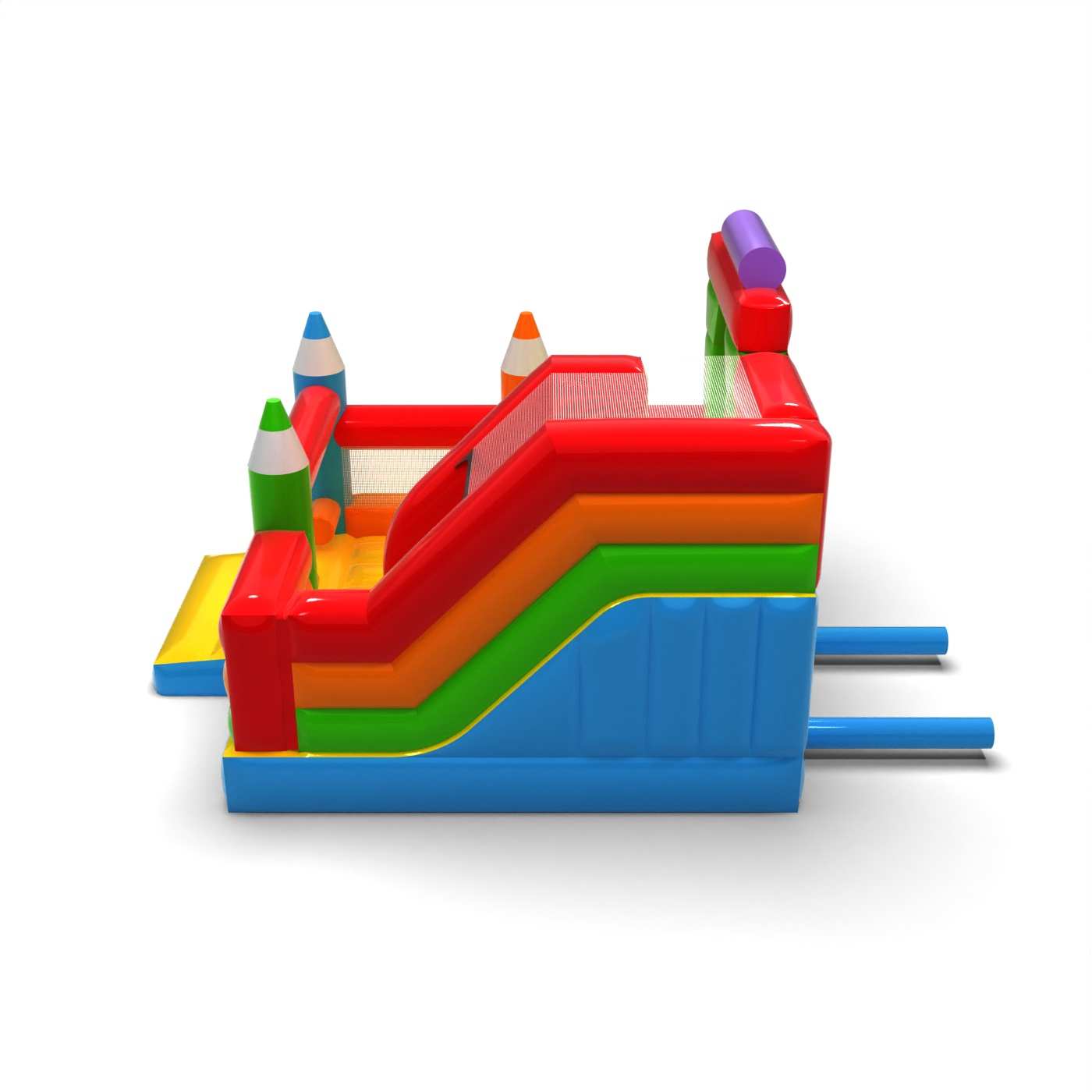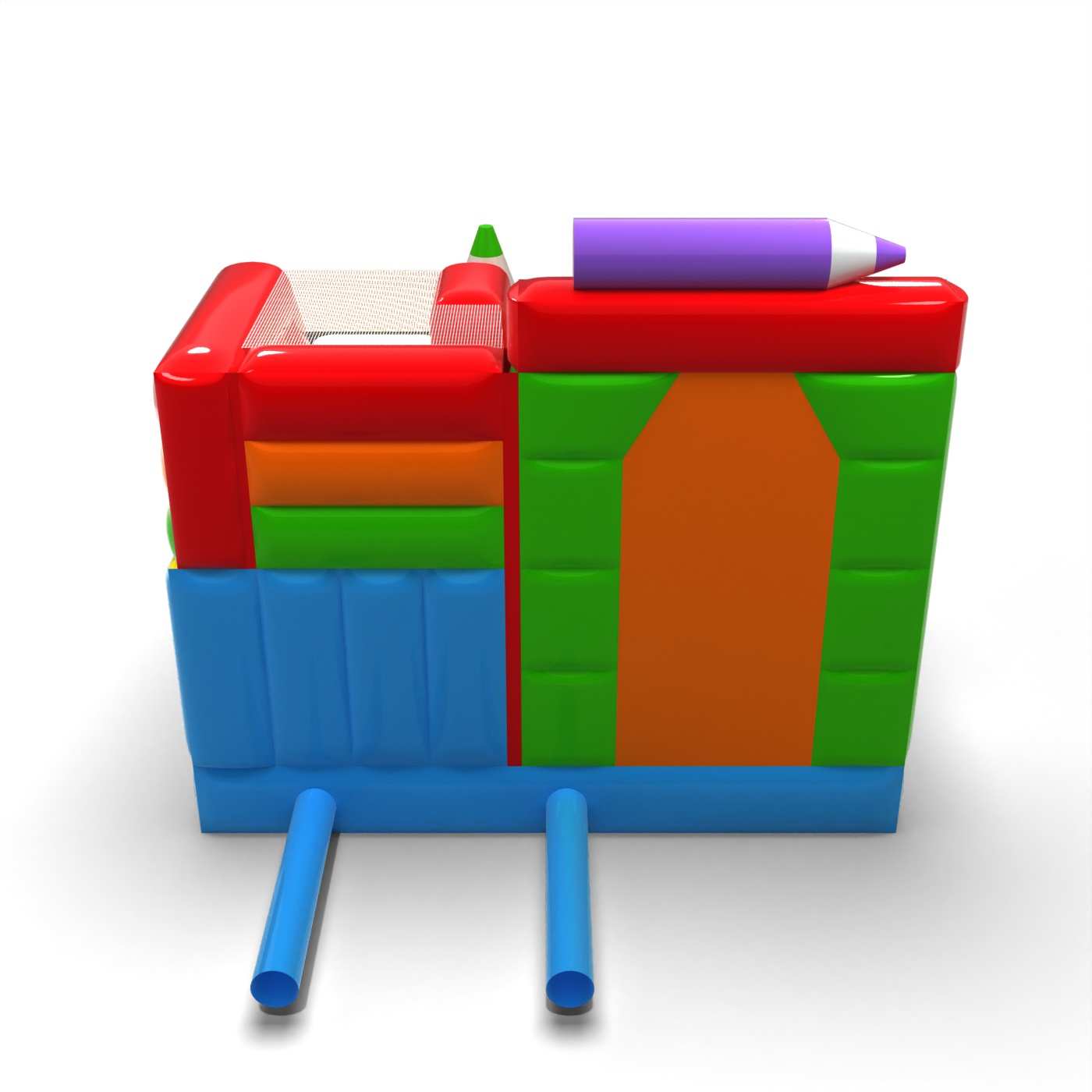 Kriedová forma štruktúry dodáva tejto atrakcii kreatívny a priateľský charakter, ktorý sa okamžite spája so zábavou a tvorivosťou. Kombinácia skákacej plochy so šmýkačkou umožňuje deťom aktívne si užívať atrakciu a udrží ich záujem dlhšie. Pastelová estetika a výrazné prvky v tvare pasteliek budujú ľahkú, náučnú atmosféru podujatia. Je to univerzálna ponuka pre požičovne slúžiace na rodinné festivaly a animačné zóny. Atrakcia bude dobre fungovať na piknikoch, školských podujatiach a detských oslavách pod holým nebom.