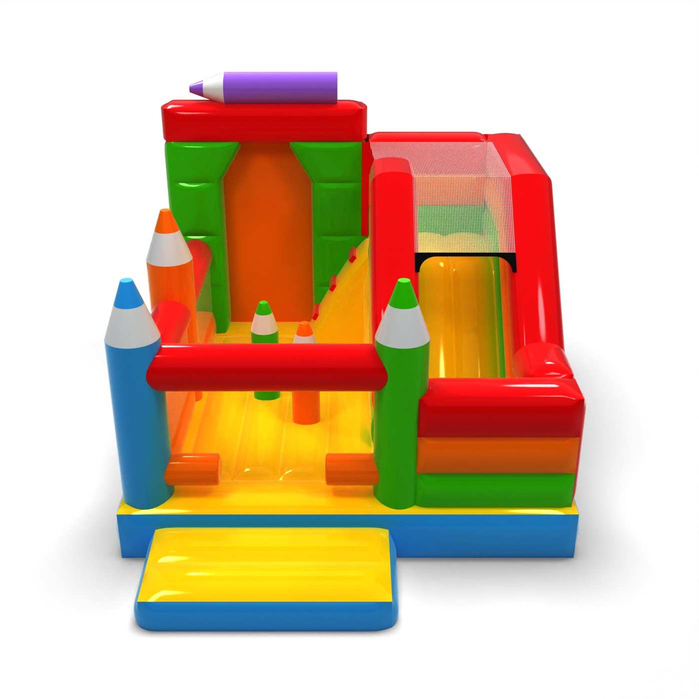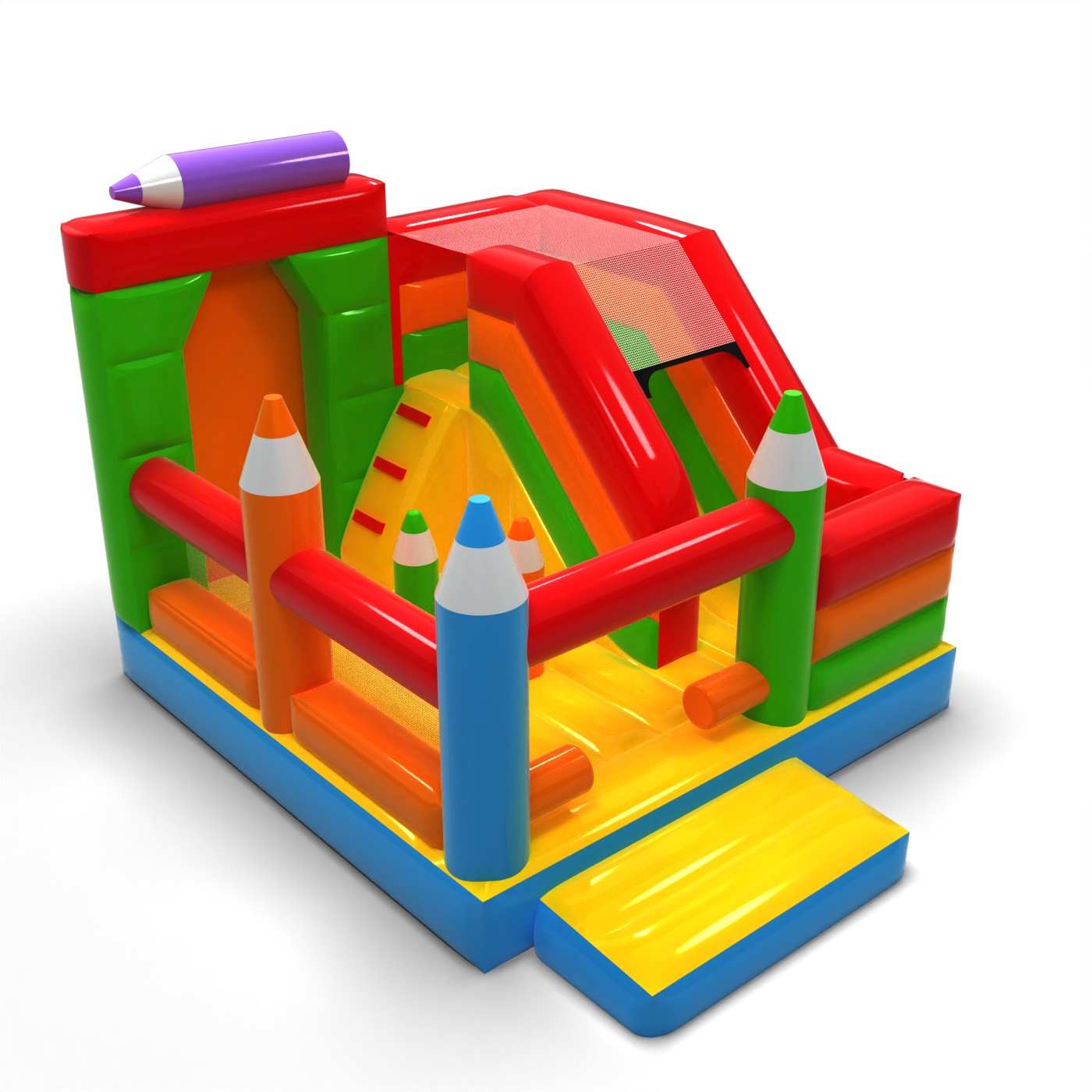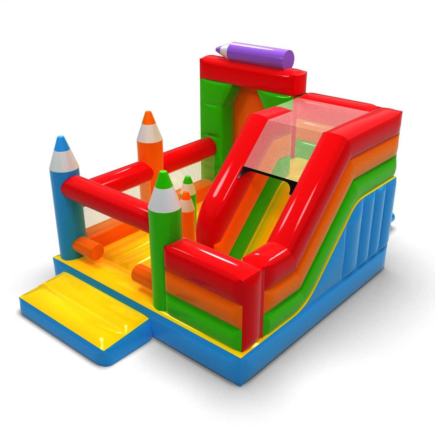 Kriedová forma štruktúry dodáva tejto atrakcii kreatívny a priateľský charakter, ktorý sa okamžite spája so zábavou a tvorivosťou. Kombinácia skákacej plochy so šmýkačkou umožňuje deťom aktívne si užívať atrakciu a udrží ich záujem dlhšie. Pastelová estetika a výrazné prvky v tvare pasteliek budujú ľahkú, náučnú atmosféru podujatia. Je to univerzálna ponuka pre požičovne slúžiace na rodinné festivaly a animačné zóny. Atrakcia bude dobre fungovať na piknikoch, školských podujatiach a detských oslavách pod holým nebom.