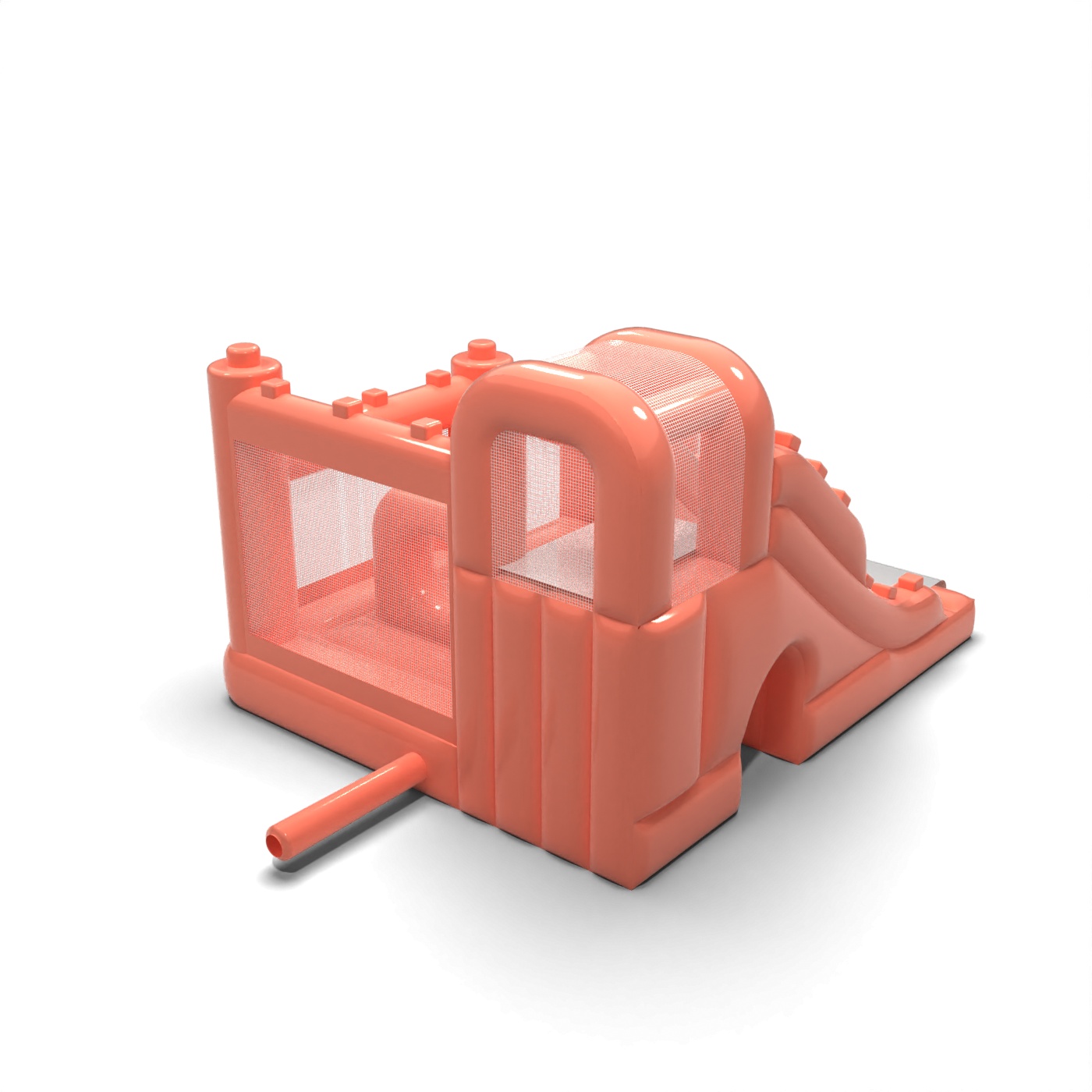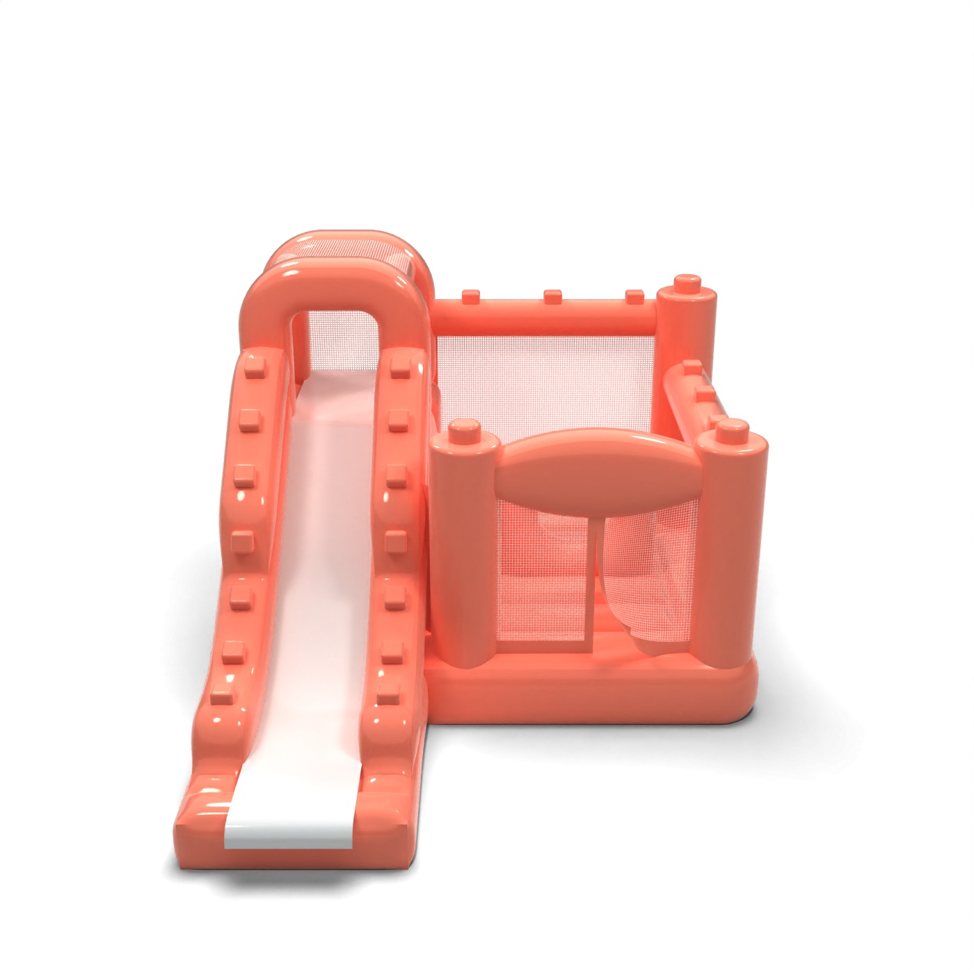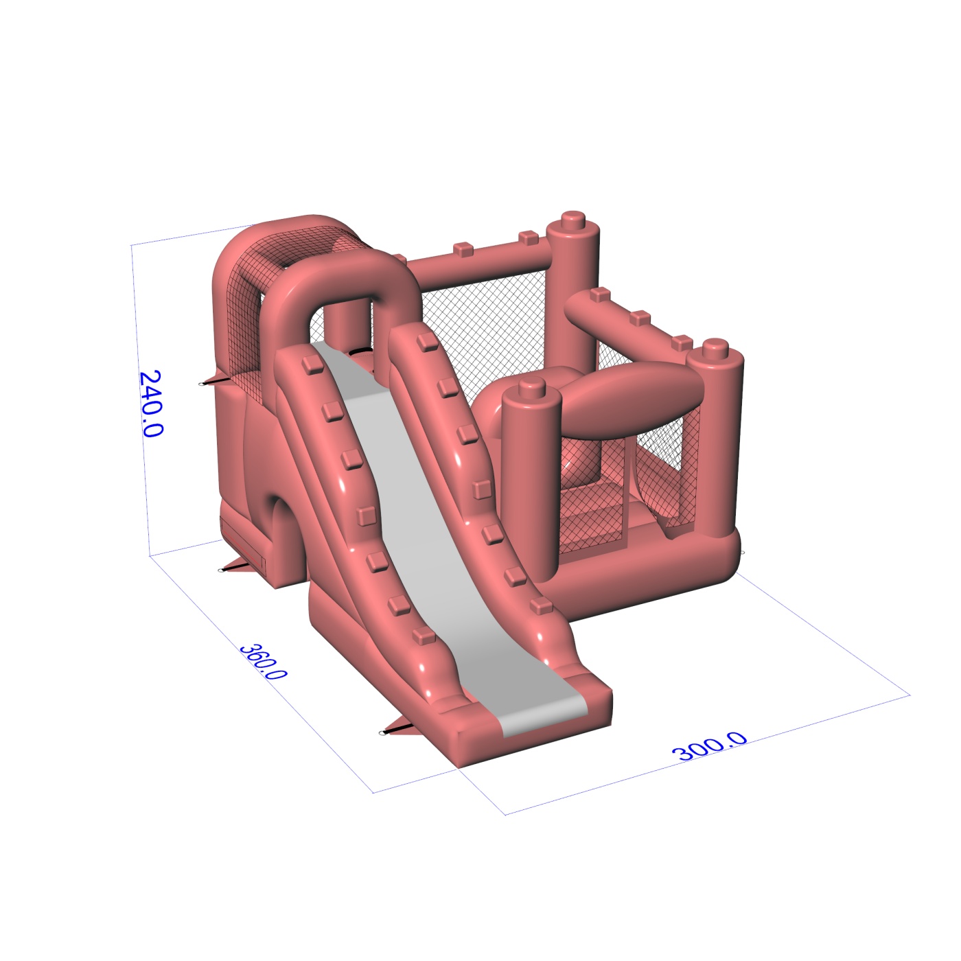 Tlmená farebná schéma v odtieni špinavej ružovej dodáva tejto atrakcii modernejší a elegantnejší vzhľad ako klasické intenzívne nafukovacie atrakcie. Kombinácia skákacej a jednokoľajovej šmykľavky poskytuje deťom pestrú aktivitu bez potreby rozsiahleho priestoru. Kompaktná karoséria a prehľadné usporiadanie vstupu uľahčujú organizáciu hracej plochy počas súkromných a firemných podujatí. Je to ponuka pre požičovne, ktoré chcú odlíšiť svoju ponuku estetikou prispôsobenou prémiovým podujatiam. Model sa bude dobre hodiť na rodinné oslavy, špeciálne podujatia a elegantné pikniky pod holým nebom.