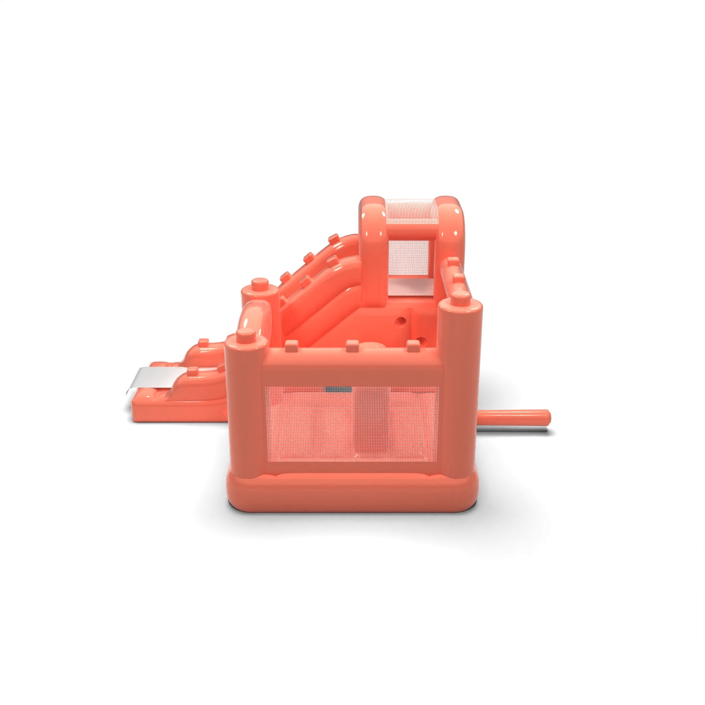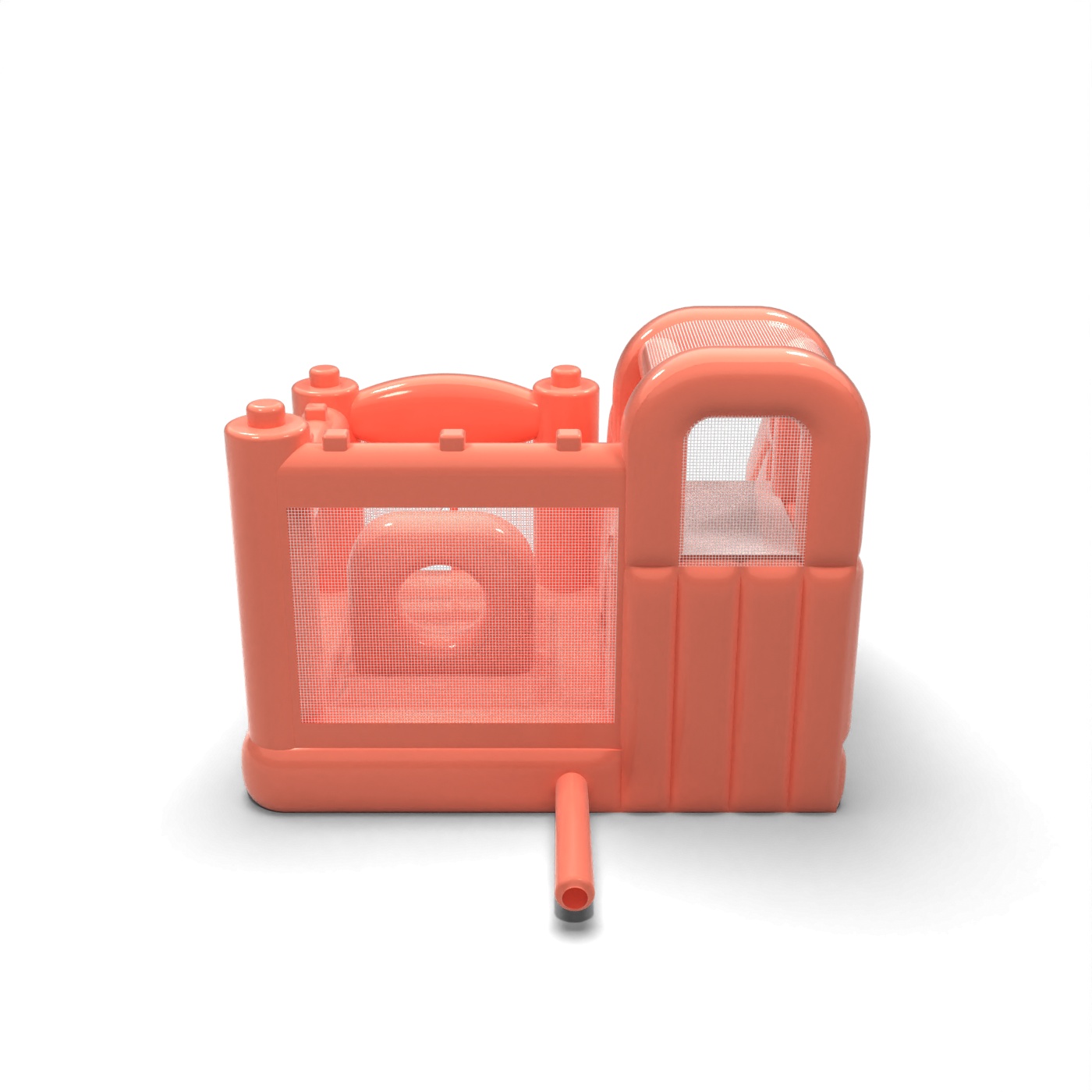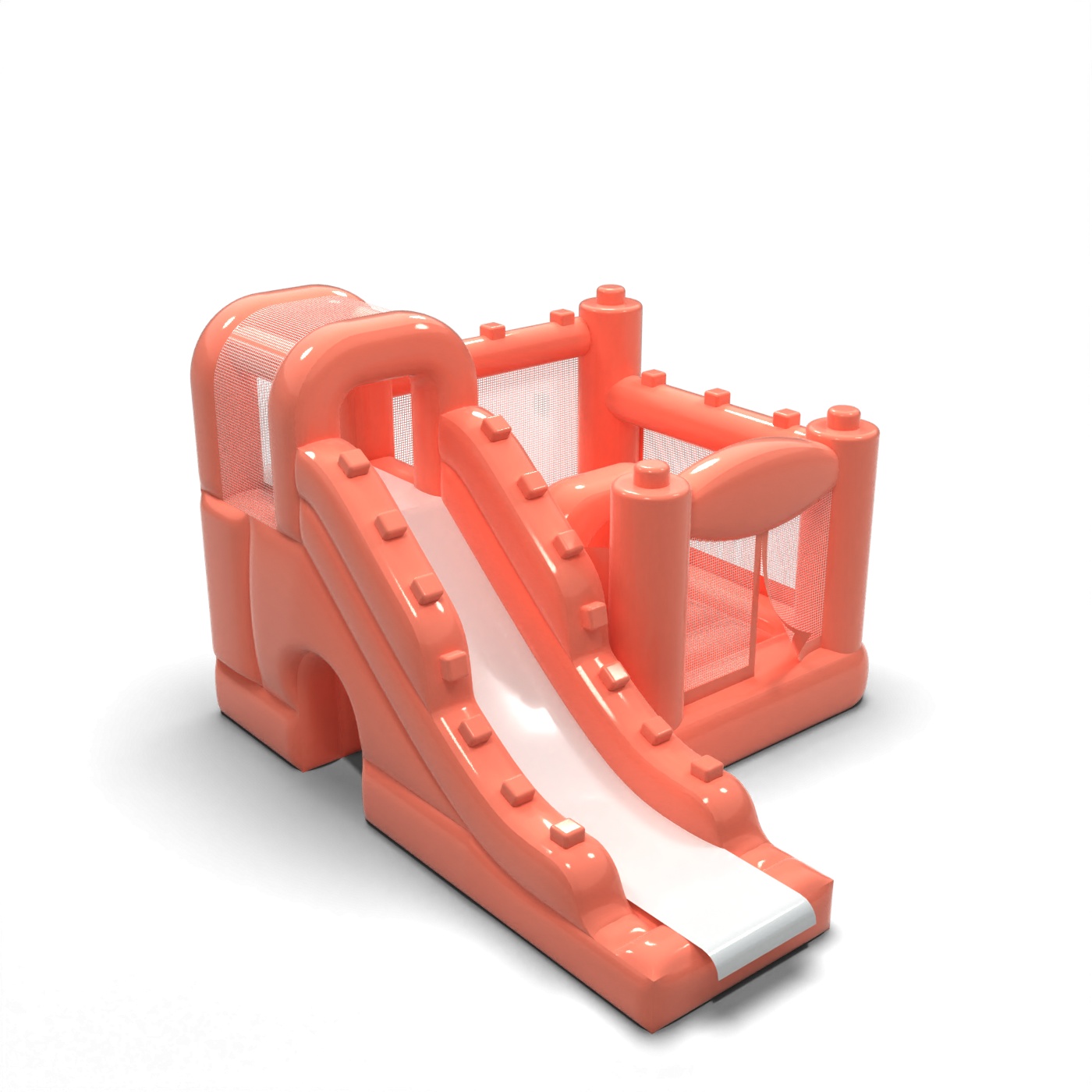 Tlmená farebná schéma v odtieni špinavej ružovej dodáva tejto atrakcii modernejší a elegantnejší vzhľad ako klasické intenzívne nafukovacie atrakcie. Kombinácia skákacej a jednokoľajovej šmykľavky poskytuje deťom pestrú aktivitu bez potreby rozsiahleho priestoru. Kompaktná karoséria a prehľadné usporiadanie vstupu uľahčujú organizáciu hracej plochy počas súkromných a firemných podujatí. Je to ponuka pre požičovne, ktoré chcú odlíšiť svoju ponuku estetikou prispôsobenou prémiovým podujatiam. Model sa bude dobre hodiť na rodinné oslavy, špeciálne podujatia a elegantné pikniky pod holým nebom.