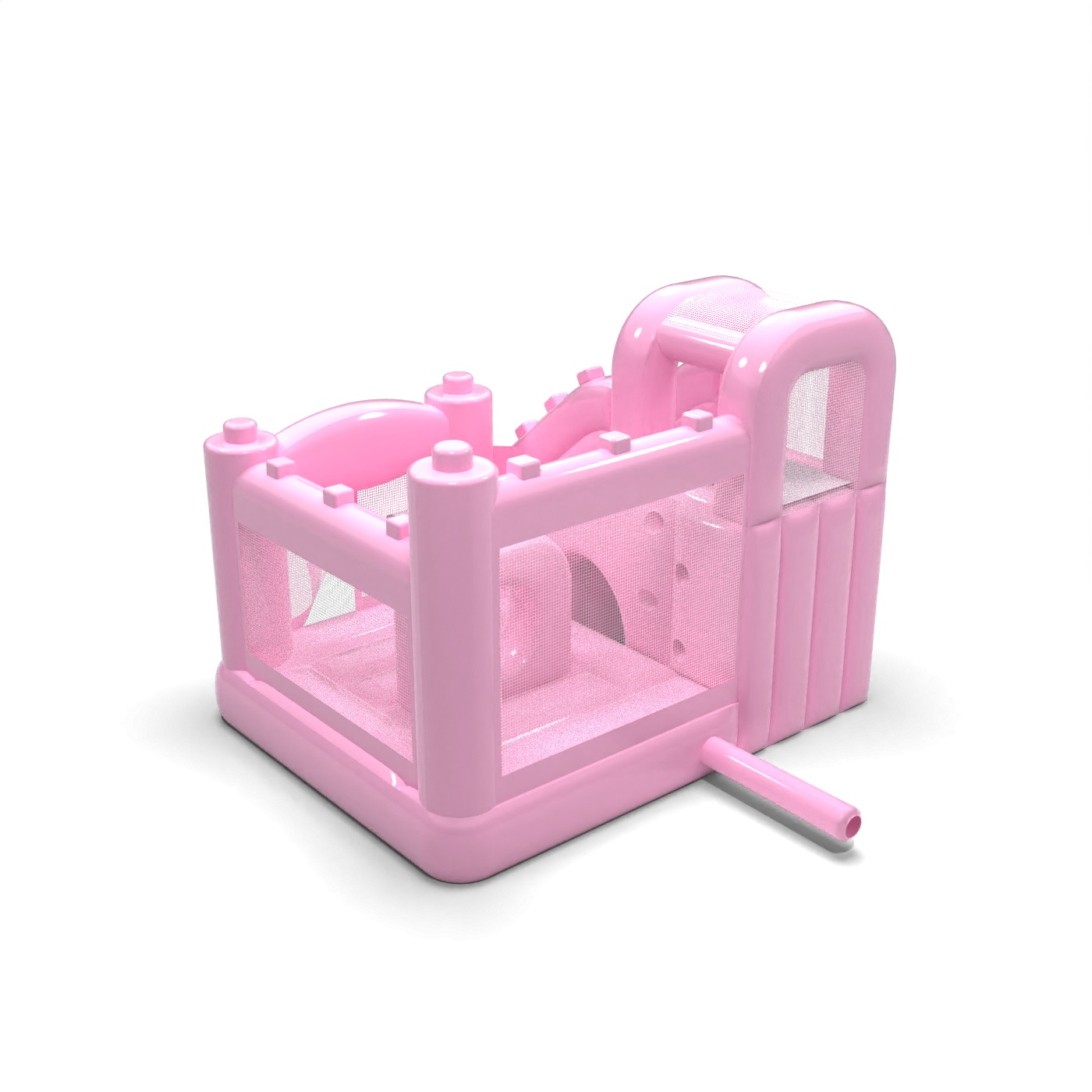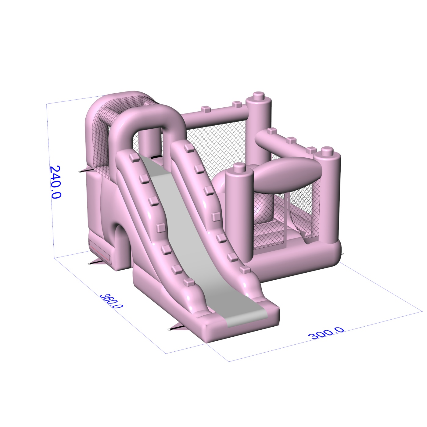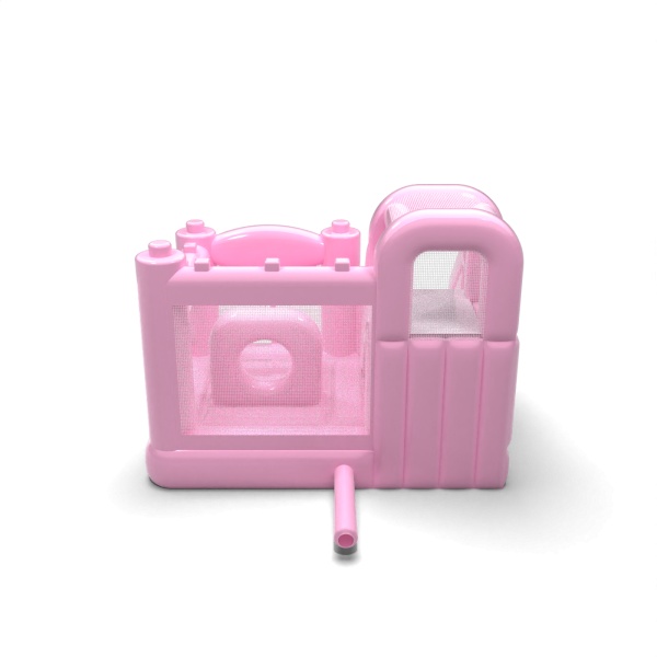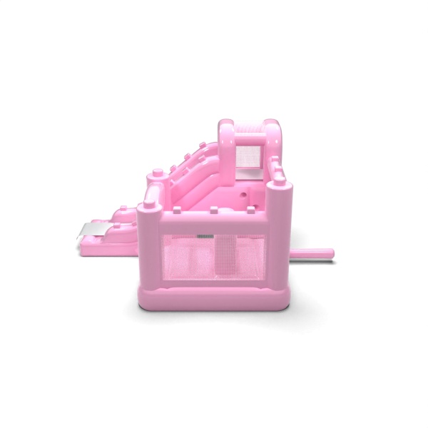 Jemná karoséria v púdrovo ružovej farbe vnáša do detského kútika pokojnú a harmonickú atmosféru, ktorá podporuje rodinnú atmosféru podujatia. Interiér s priestorom na skákanie a bočne vedenou šmýkačkou umožňuje deťom prirodzený pohyb medzi aktivitami bez toho, aby vznikali zápchy. Konštrukcia bola navrhnutá tak, aby maximálne využila malú plochu a zároveň zachovala komfort pri hre. Toto riešenie bude dobre fungovať pre požičovne slúžiace materským školám, hotelové animácie a komorné podujatia v exteriéri. Model sa najlepšie hodí na projekty, kde je dôležitá jemná estetika a prívetivosť atrakcie pre deti.