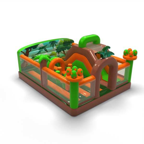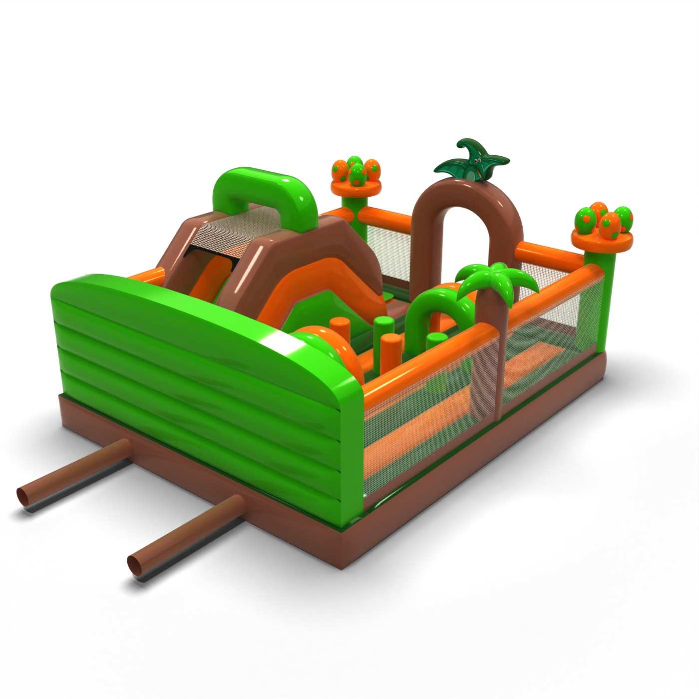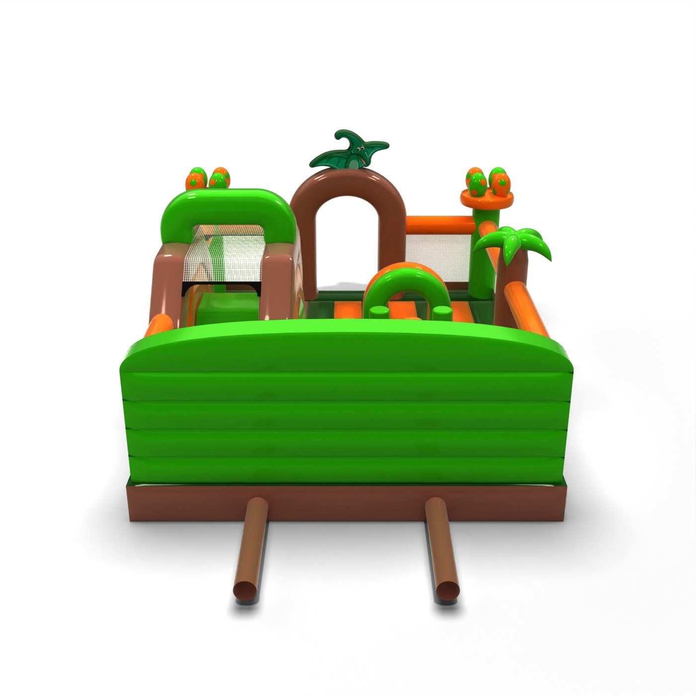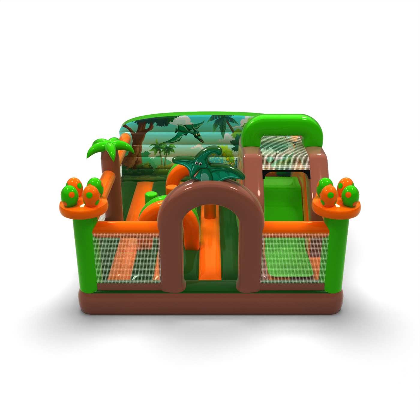 Jurská atmosféra a kompaktný tvar vytvárajú atraktívny priestor na hranie, ktorý rýchlo priťahuje deti a podnecuje ich k aktivite. Interiér ihriska ponúka rôzne prvky na skákanie a pohyb, takže hra zostáva dynamická a pútavá. Dinosaurí dizajn vytvára ucelený, dobrodružný príbeh a dobre zapadá do tematických animačných zón. Je to praktické riešenie pre nájomné spoločnosti, ktoré hľadajú atrakciu so širokým záberom a dobrým obratom účastníkov. Ihrisko sa bude dobre hodiť na festivaloch, rodinných piknikoch a vonkajších podujatiach, kde je potrebná kompaktná, ale jasne viditeľná atrakcia.