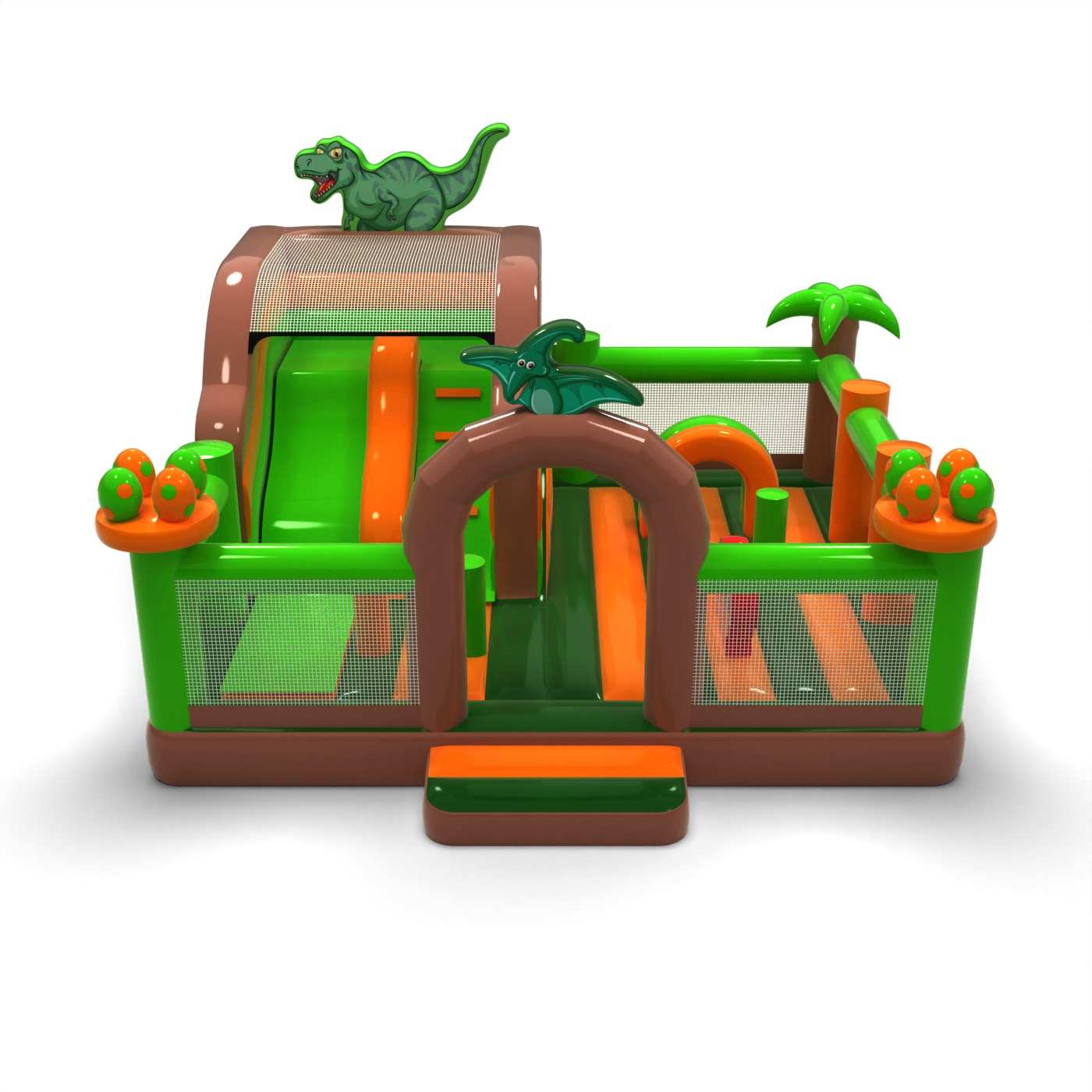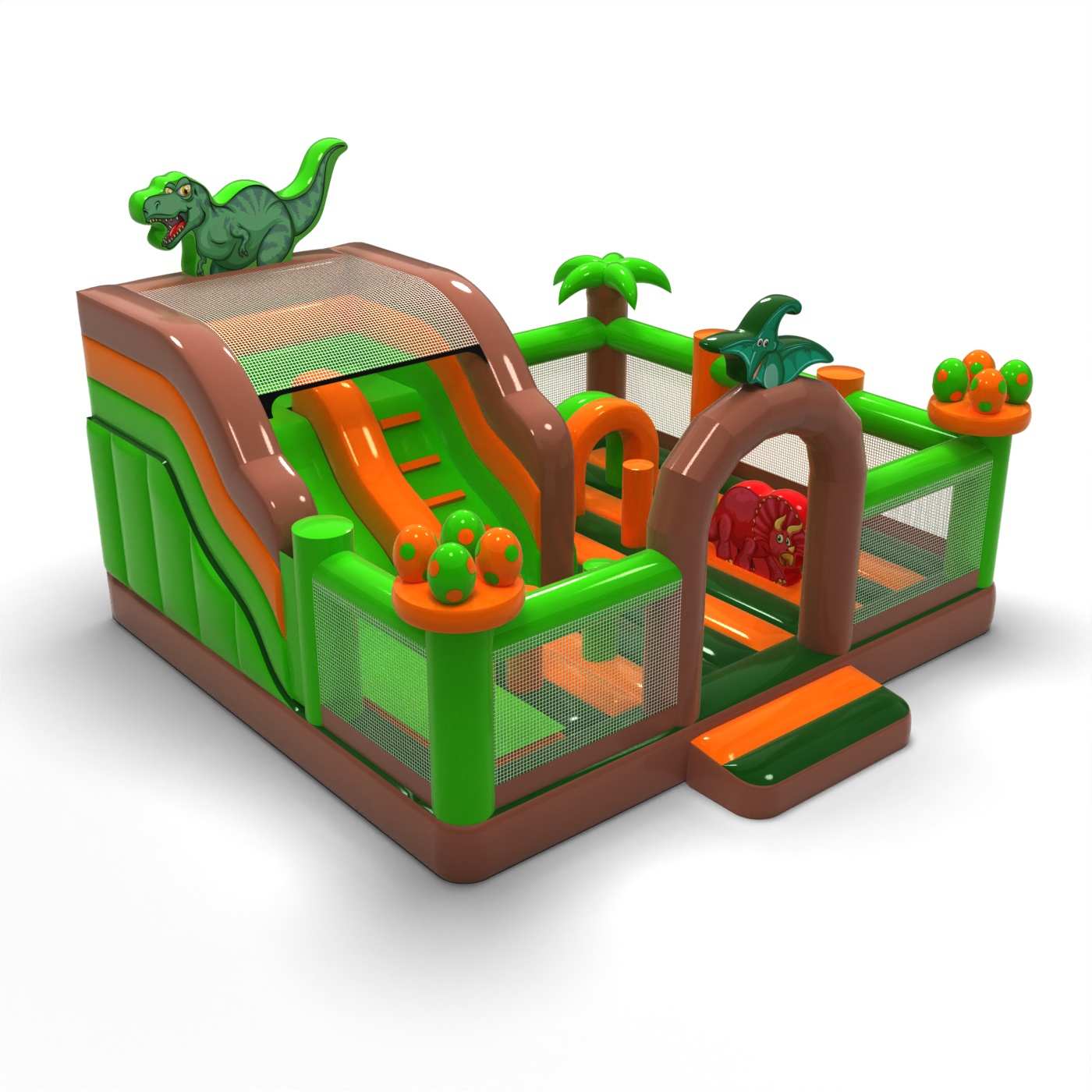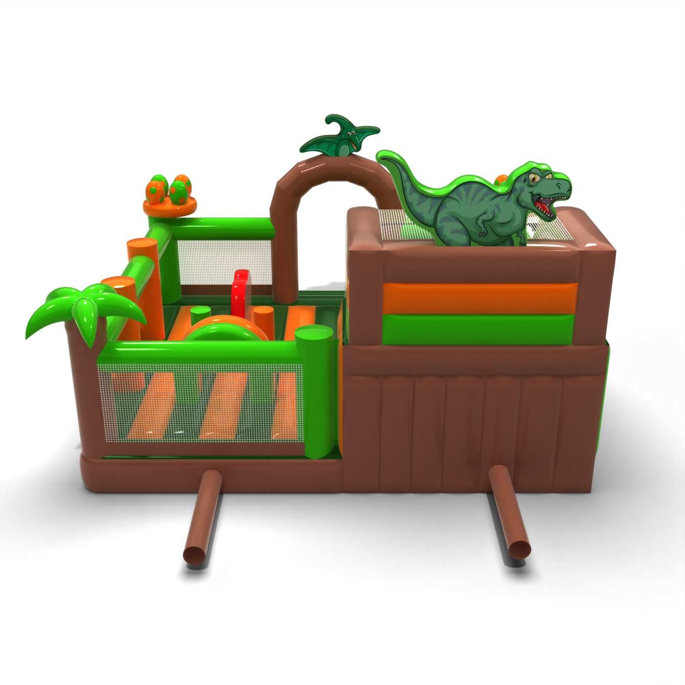 Väčšia hracia plocha v dizajne dinosaurov umožňuje vytvoriť rozšírenú zónu aktivít pre viac detí. Premyslené rozmiestnenie prvkov podporuje voľný pohyb a prirodzené striedanie účastníkov bez toho, aby vznikali zápchy. Prehistorický motív dodáva atrakcii charakter a posilňuje jej vizuálnu prítomnosť na podujatí. Je to model, ktorý si vyberajú organizátori, ktorí potrebujú jednu nafukovačku schopnú zvládnuť intenzívnu prevádzku. Ihrisko sa najlepšie hodí na väčšie rodinné a mestské podujatia, kde je dôležitý priestor, plynulosť hry a dobrá viditeľnosť atrakcie.
