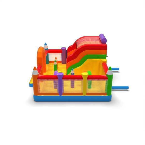 Väčšia plocha ihriska v prevedení pastelka umožňuje vytvoriť rozšírenú zónu tvorivých aktivít pre viac detí. Premyslené rozmiestnenie prvkov podporuje plynulý pohyb a prirodzené otáčanie účastníkov. Pastelová estetika a formy inšpirované pastelkami dodávajú celku ľahký, priateľský charakter. Tento model je obľúbenou voľbou pre väčšie rodinné podujatia. Ihrisko je vhodné na festivaly, mestské dni a podujatia pod holým nebom s oddelenou časťou pre deti.