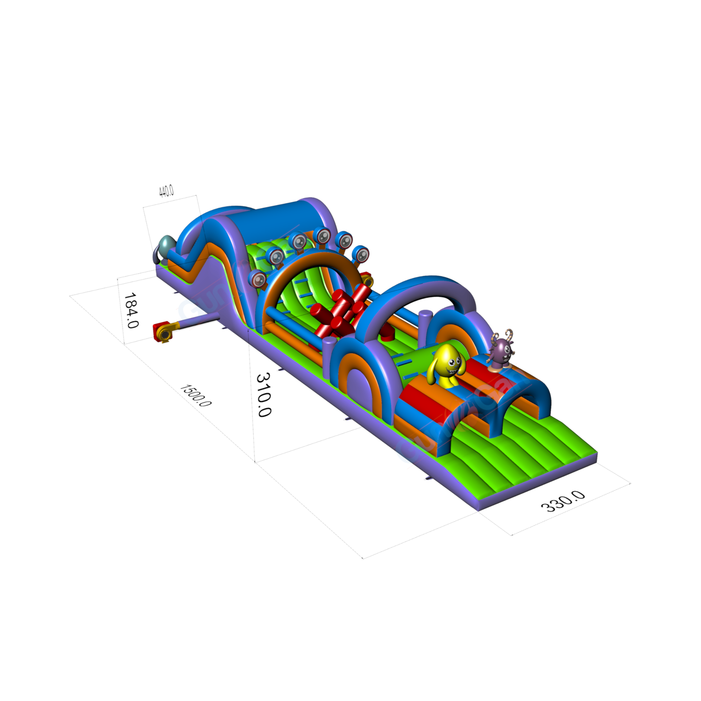 Nafukovacia prekážková dráha s motívom príšerky je pestrá atrakcia, ktorá deťom poskytne veľa zábavy a vzrušenia. Priateľské príšerky a zábavné prekážky podporujú fyzickú aktivitu a zábavu. Táto prekážková dráha je ideálna na festivaly, narodeniny alebo vonkajšie podujatia a zaručuje chvíle plné zábavy.