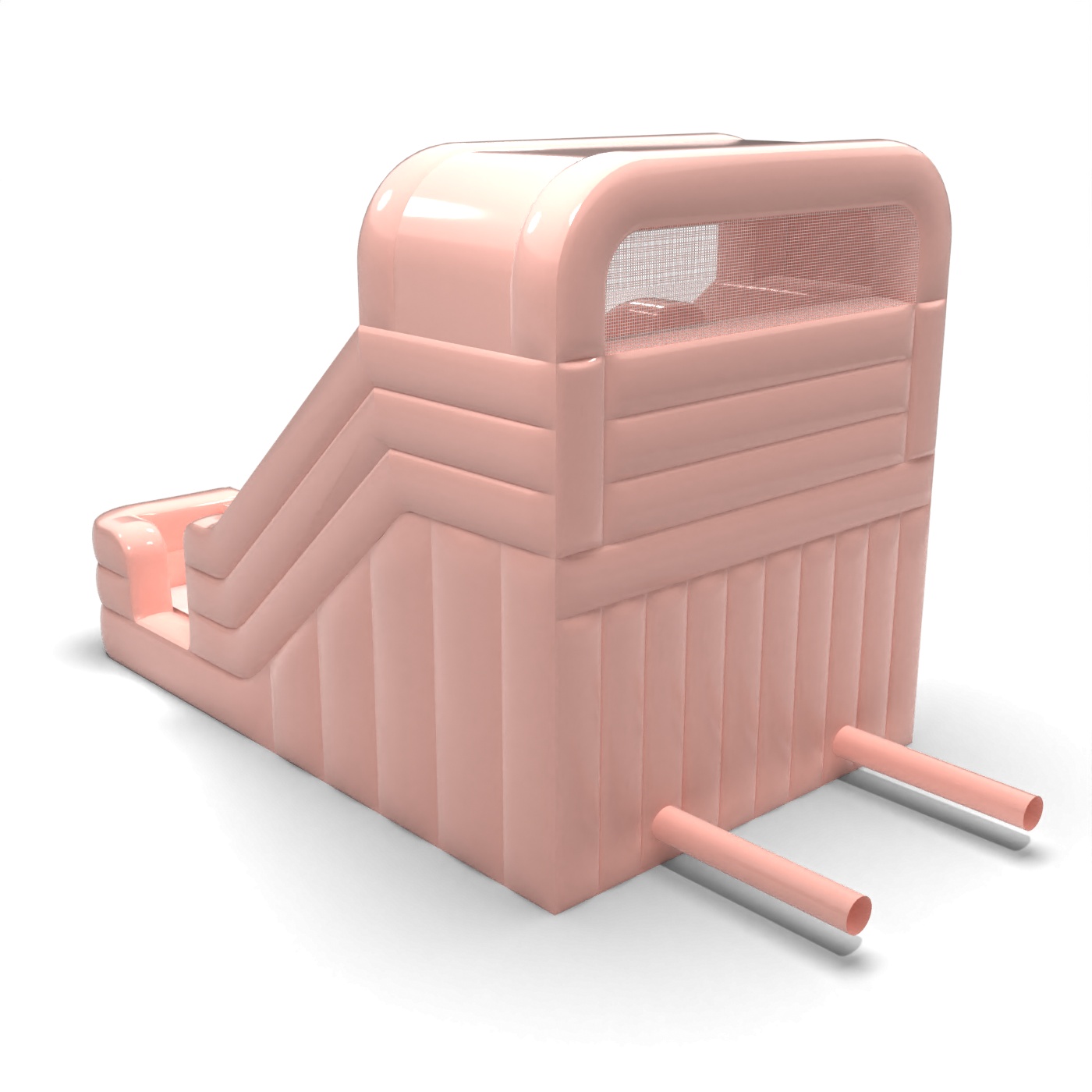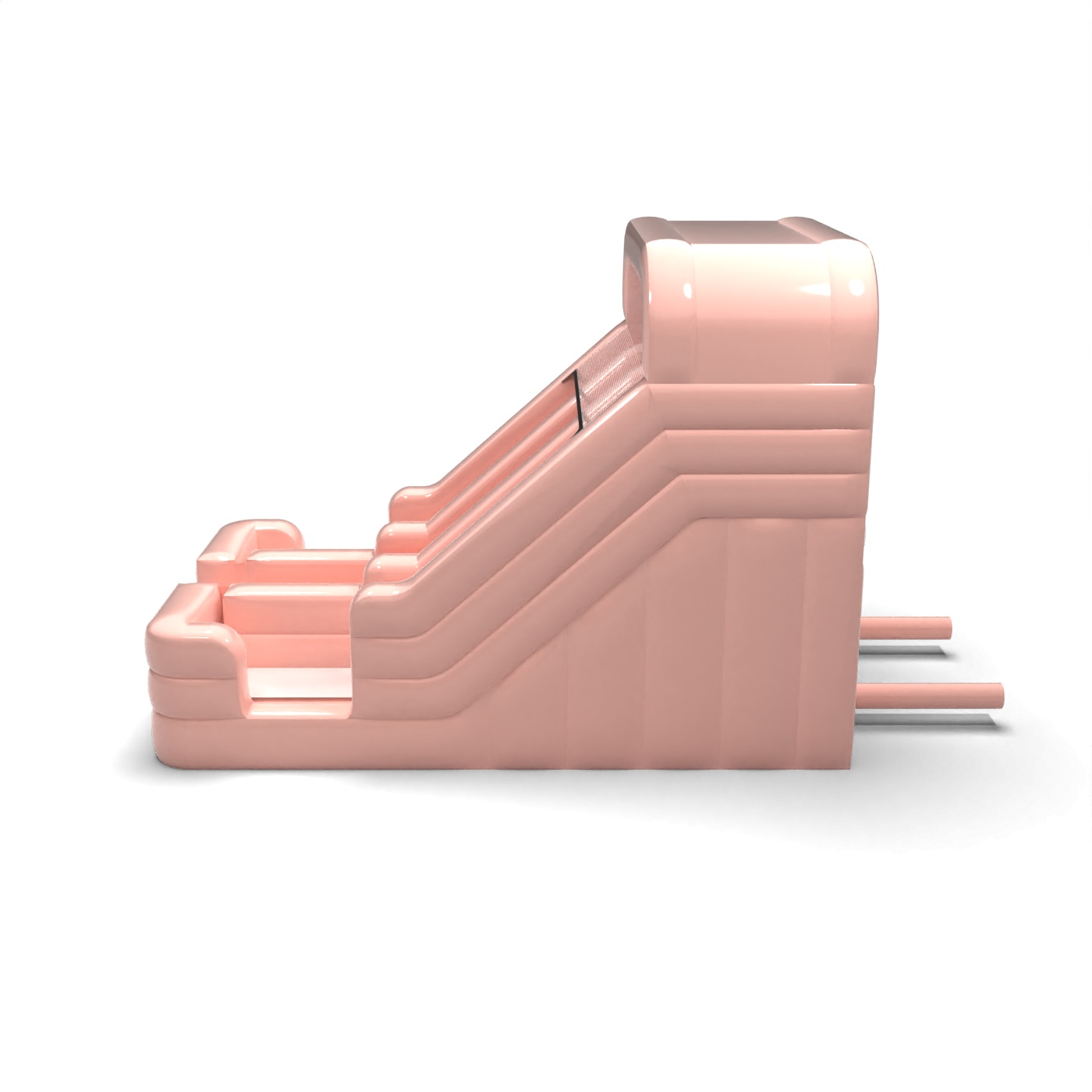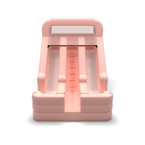 Dvojdráhový dizajn v pastelovej ružovej farbe vytvára pútavú, ale esteticky nenápadnú atrakciu ideálnu na rodinnú zábavu. Paralelné dráhy šmýkačky umožňujú deťom používať nafukovačku súčasne, čím sa zvyšuje plynulosť hry a skracuje čas čakania. Kompaktná, jasne definovaná karoséria vyzerá dobre v detskom priestore bez toho, aby dominovala celému priestoru podujatia. Je to model vhodný na prenájom cateringových zariadení na vonkajšie narodeninové oslavy, prijímacie večierky a pikniky elegantného charakteru. Šmykľavka sa najlepšie uplatní tam, kde je dôležitá estetika, dobrá obrátka účastníkov a jasný, ale decentný vizuálny akcent.