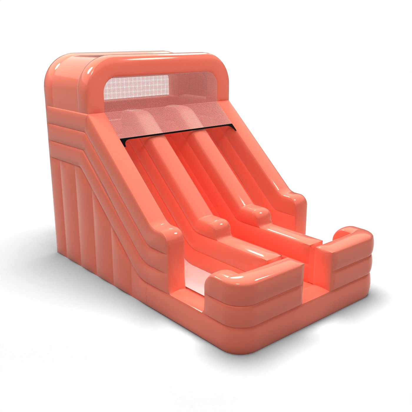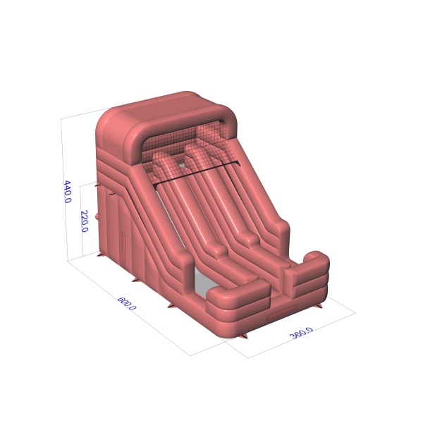 Tlmený odtieň špinavoružovej farby dodáva tejto šmykľavke moderný a štruktúrovaný vzhľad, ktorý vynikne na pozadí klasických, intenzívnych vzorov. Dve paralelné dráhy umožňujú hru v dynamickom tempe, čo je dôležité, keď sú deti pohyblivejšie. Stabilná štartovacia plošina a jasne ohraničená pristávacia plocha podporujú bezpečnú a plynulú jazdu. Je to možnosť pre prenájom a spoločnosti zabezpečujúce podujatia na súkromné oslavy aj menšie firemné akcie. Model sa osvedčí na sídliskových festivaloch, rodinných piknikoch a podujatiach na polootvorených priestranstvách.