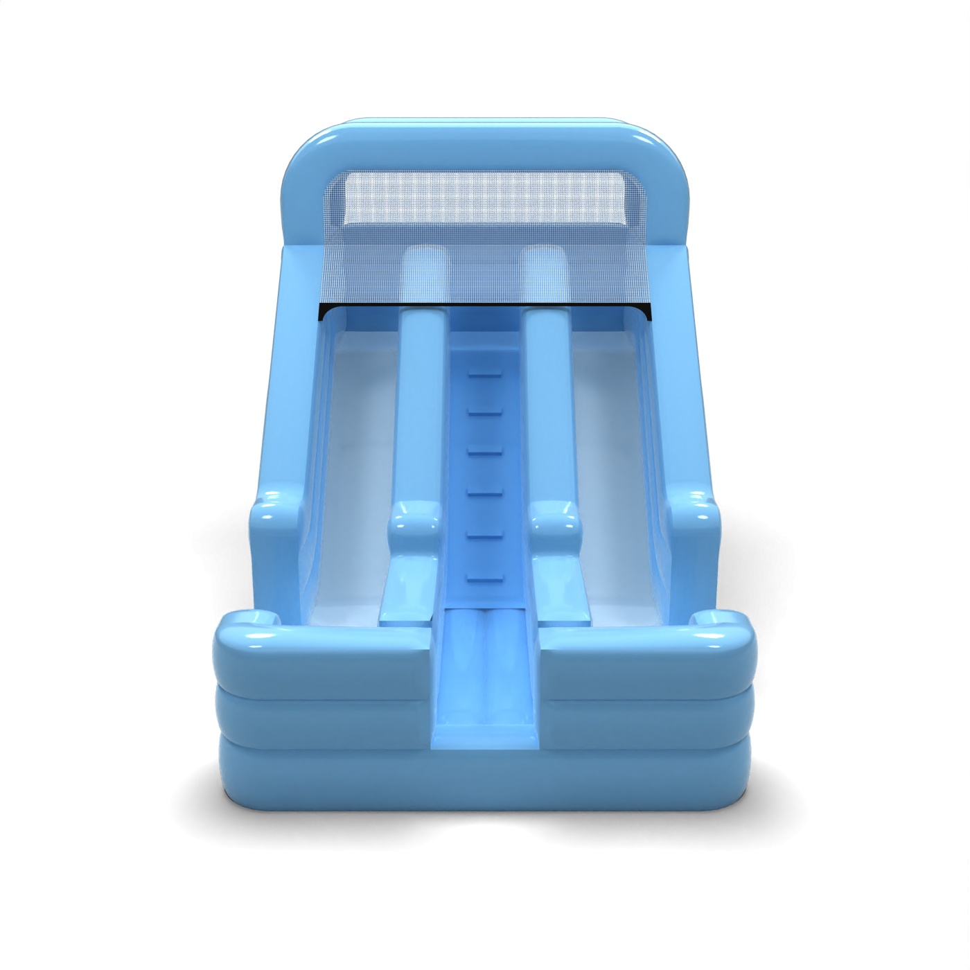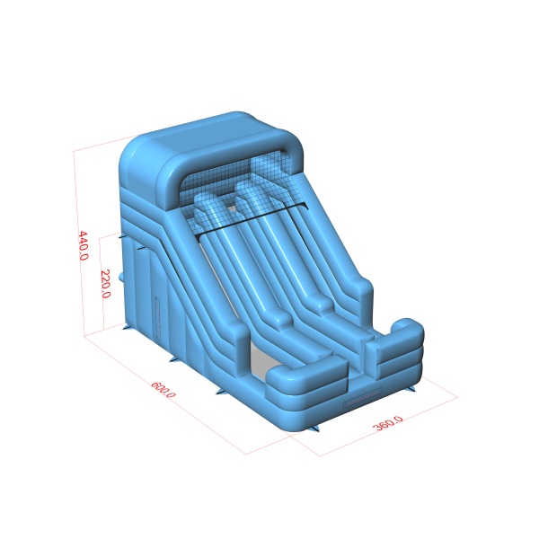 Pastelová modrá farba zvýrazňuje svieži a univerzálny charakter tohto dvojitého sklíčka, vďaka čomu ho možno ľahko začleniť do rôznych koncepcií podujatí. Paralelné šmykľavky umožňujú súčasnú hru, čo zvyšuje tempo realizácie a znižuje prestoje v detskom priestore. Kompaktný dizajn s jasne vymedzenou štartovacou plošinou umožňuje efektívne riadenie pohybu účastníkov. Je to možnosť pre spoločnosti organizujúce podujatia a požičovne prevádzkujúce detské dni, firemné pikniky a školské podujatia v prírode. Model sa osvedčí všade tam, kde sa vyžaduje viditeľná, ale esteticky neutrálna atrakcia s dobrou priepustnosťou.