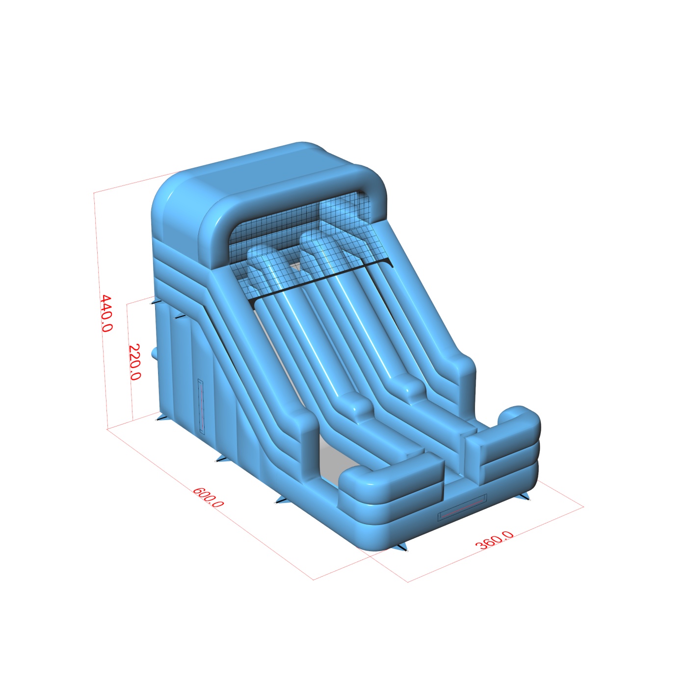 Rovnako ako všetky naše nafukovacie atrakcie, aj tento produkt je vyrobený z vysokokvalitných materiálov – v tomto prípade z najnovšej generácie PVC s vysokou odolnosťou proti pretrhnutiu. Dvojitá nafukovacia mini šmýkačka - pastelová modrá má rozmery: 6 m, 3,6 m, 4,4 m (dĺžka, šírka a výška). Spĺňa bezpečnostnú normu EN 14960 pre nafukovacie herné vybavenie. Odporúčame používať túto atrakciu spolu s dúchadlami, ktoré sú súčasťou balenia. Rovnako ako pri väčšine našich atrakcií poskytujeme na tento produkt dvojročnú záruku. V spoločnosti Gangaru dbáme na detaily, aby ste si vy nemuseli robiť starosti – súčasťou balenia sú všetky doplnky potrebné na zaistenie atrakcie (laná a kolíky). Produkt bol odborne skontrolovaný a certifikovaný nezávislým expertom.