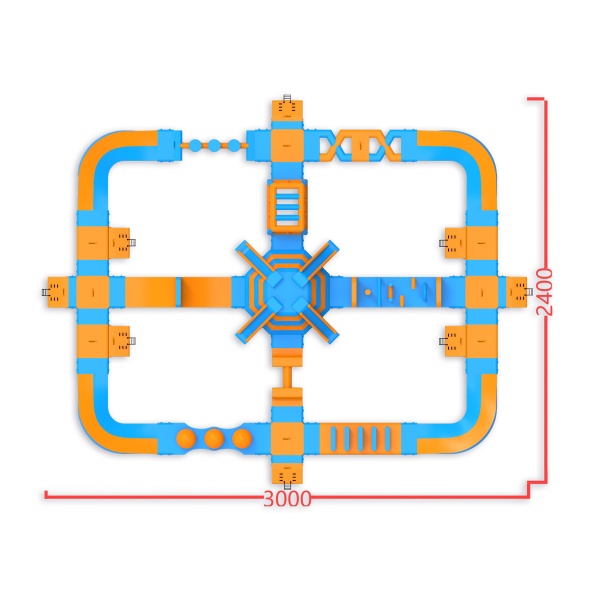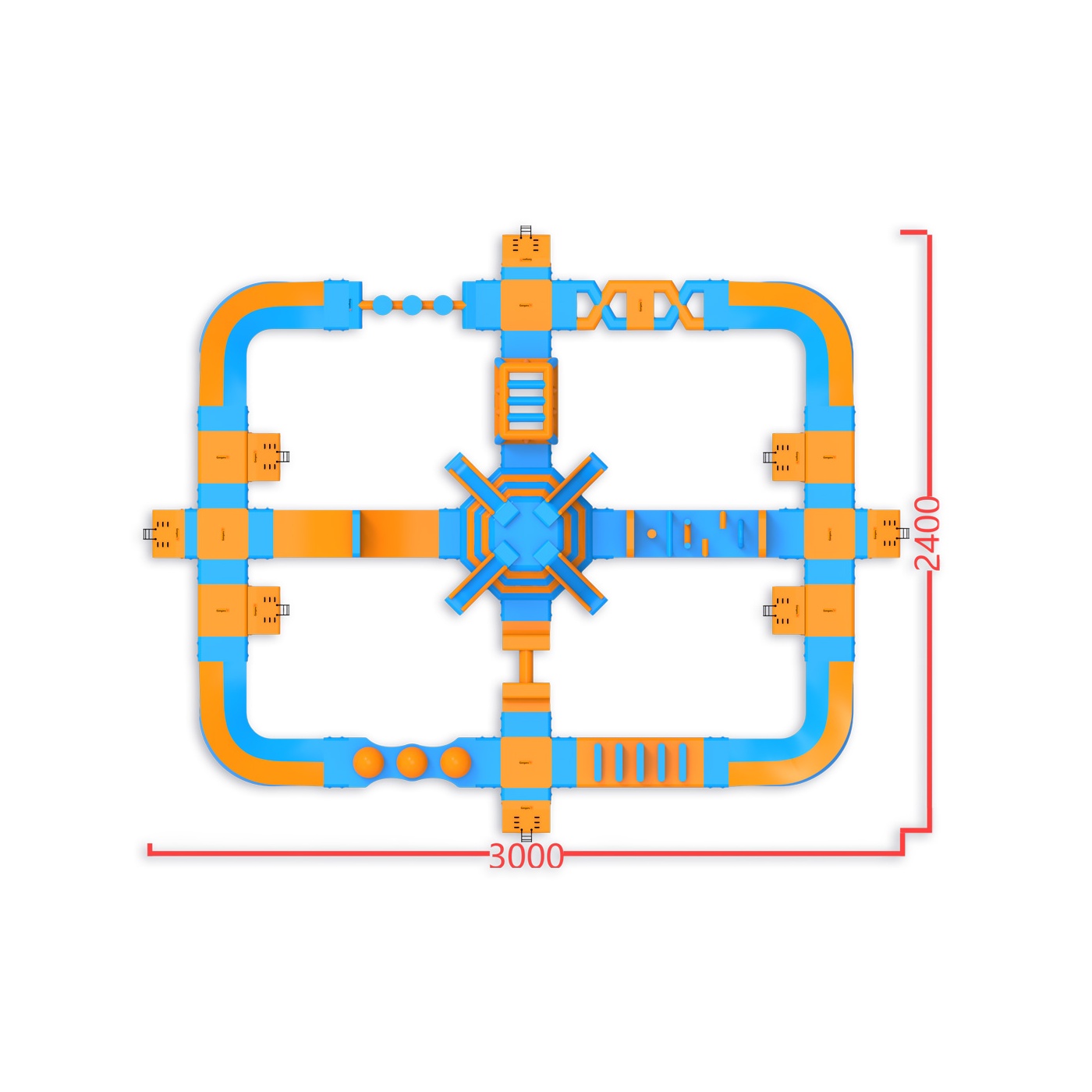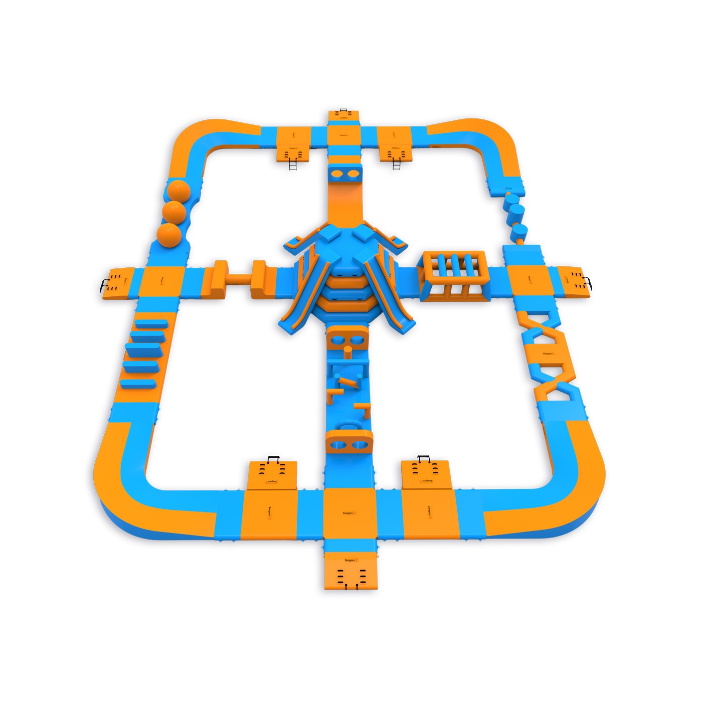 Štyri šmykľavky uprostred parku - to je dosť na to, aby si účastníci na dlhý čas udržali pozornosť. Rozloženiu dominuje centrálna veža, zatiaľ čo obvodová dráha s Wipeout loptičkami, prekážkami a ďalšími prekážkami zabezpečuje aktivitu pre každého účastníka - bez ohľadu na vek alebo úroveň kondície. Je navrhnutý tak, aby sa doň naraz zmestilo 76 ľudí, a dobre sa osvedčuje na stredne veľkých vodných plochách, kde je dôležité mať k dispozícii atrakcie pre širokú škálu hostí.