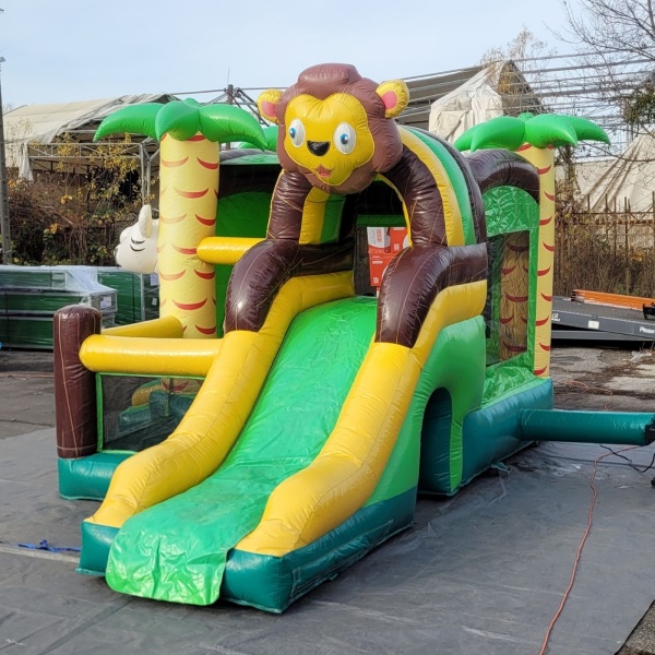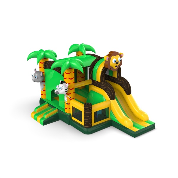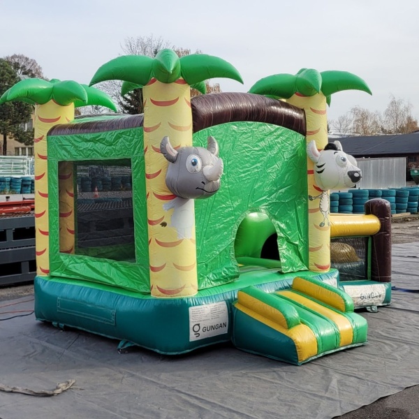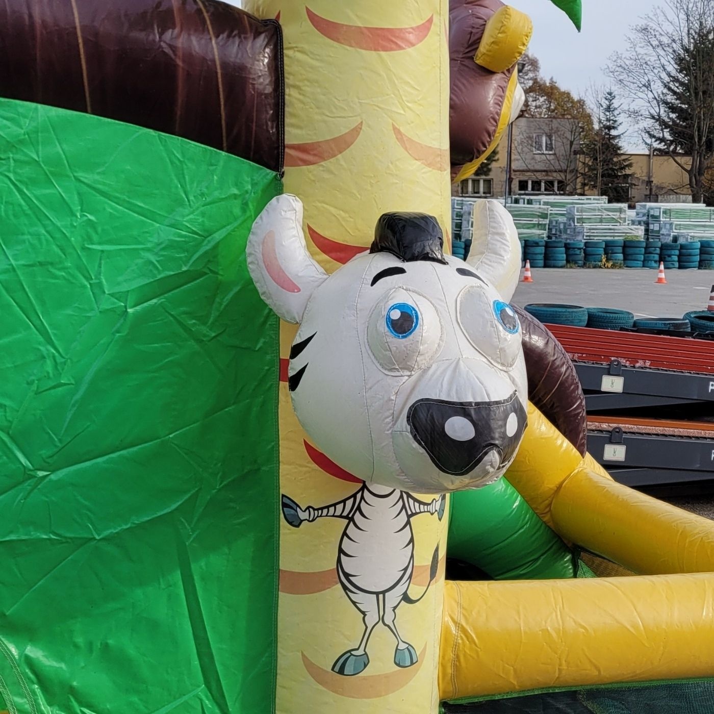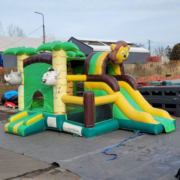 Kombinovaný nafukovací vak s motívom džungle kombinuje funkciu skákania a šmýkania, čo sa osvedčí na rodinných podujatiach a piknikoch. Atrakcia sa pravidelne používala počas komerčných podujatí. Technický stav sa opisuje ako zjavne používaný - sú na ňom viditeľné známky používania primerané intenzívnemu používaniu. Ide o rozumnú ponuku pre spoločnosti, ktoré hľadajú funkčnú nafukovačku s nižším investičným rozpočtom. Pre viac informácií, fotografií a záberov z výrobku nás prosím kontaktujte.