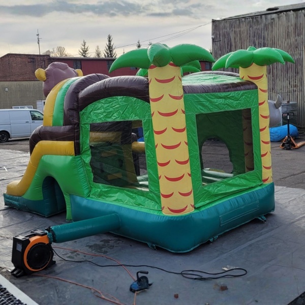 Použité nafukovacie so šmykľavkou - kombinácia s motívom džungle je určený pre tých, ktorí vedia, že dobrý biznis nevyžaduje vždy novinku priamo z výroby. Používané nafukovačky ponúkajú možnosť rýchleho vstupu do odvetvia alebo dynamického rozšírenia existujúcej ponuky – bez veľkých výdavkov. Zariadenia v tejto kategórii sú overené, poctivo opísané a pripravené na okamžité použitie – získaš teda nielen výhodnú cenu, ale aj istotu a pokoj, že atrakcia prinesie výsledky. Ak chceš investovať rozumne a konať rýchlo – tu nájdeš riešenia, ktoré dávajú zmysel.