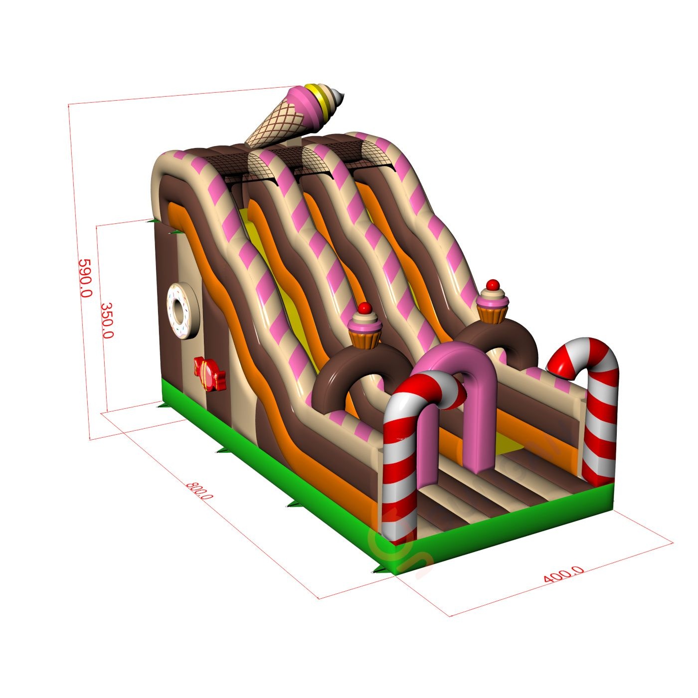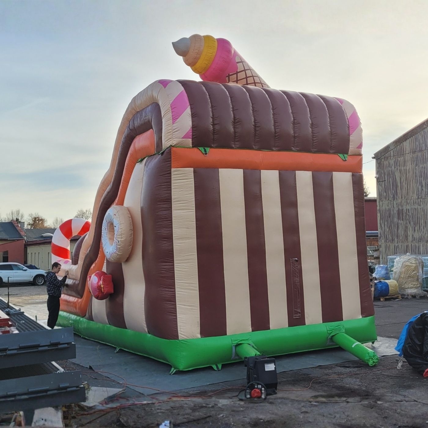 Dvojitá otvorená šmykľavka s farebným motívom cukríkov priťahuje pozornosť detí a zvyšuje kapacitu atrakcie na podujatiach. Nafukovačka sa používala počas štandardných produkcií podujatí. Technický stav sa hodnotí ako dobrý - sú viditeľné bežné známky používania bez vplyvu na funkčnosť. Ide o solídnu investičnú ponuku pre spoločnosti, ktoré hľadajú osvedčenú atrakciu s atraktívnym pomerom ceny a kvality. Pre viac informácií, fotografií a záznamov výrobku nás prosím kontaktujte.